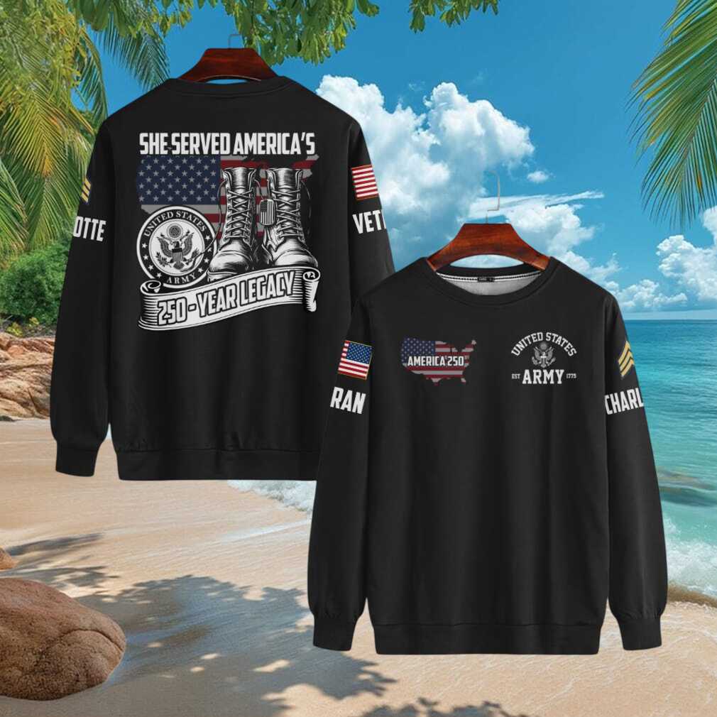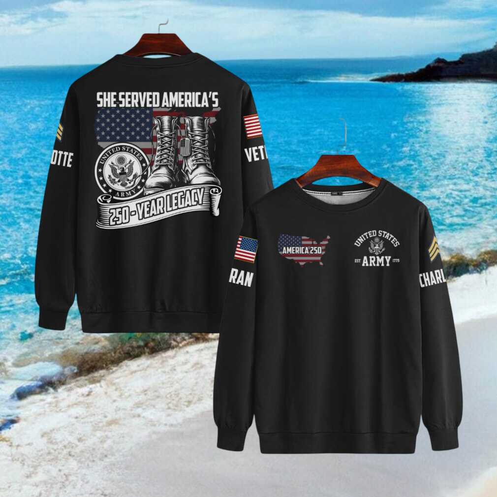 ()She Served America’s 250 Year Legacy US Army Personalized Veteran T Shirt, Treat yourself or make a great gift for your loved ones