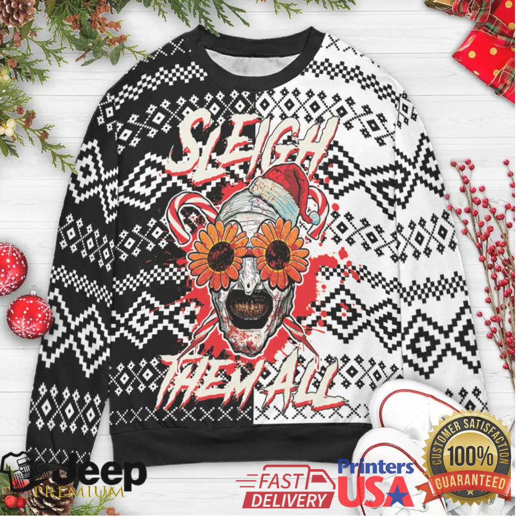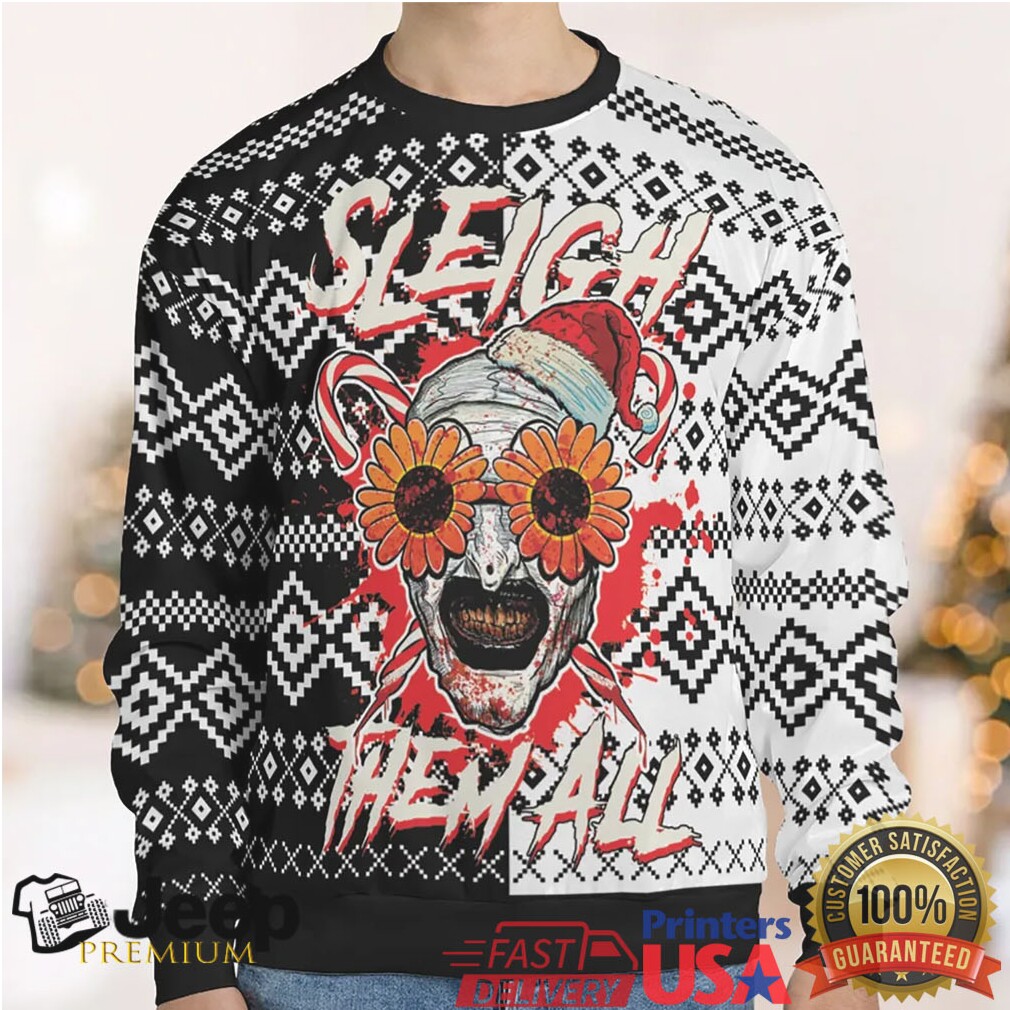👕 About Sleigh Them All Terrifier Ugly Christmas Sweatshirt