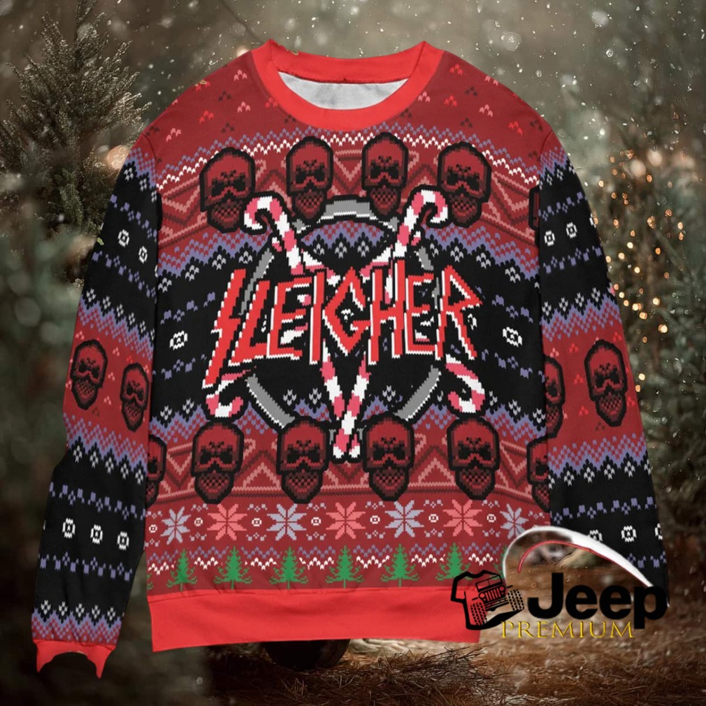 👕 About Sleigher Christmas Slayer Band Ugly Christmas Sweatshirt