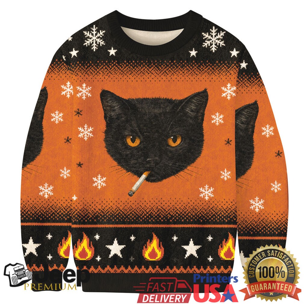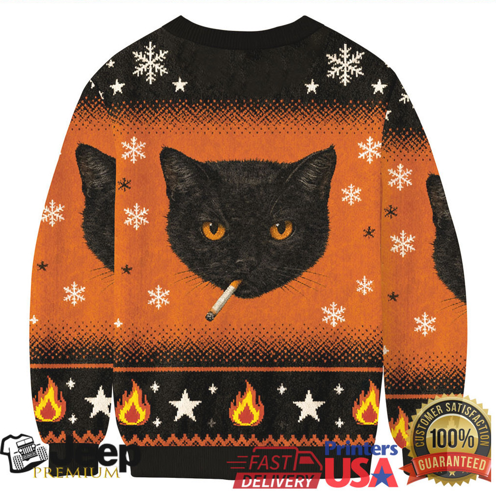 To keep your Smoking Cat Ugly Sweatshirt looking its best, machine wash it inside out in cold water with a mild detergent. Tumble dry on low or hang it to dry. Avoid ironing directly on the design to preserve its quirky charm for many wears to come.