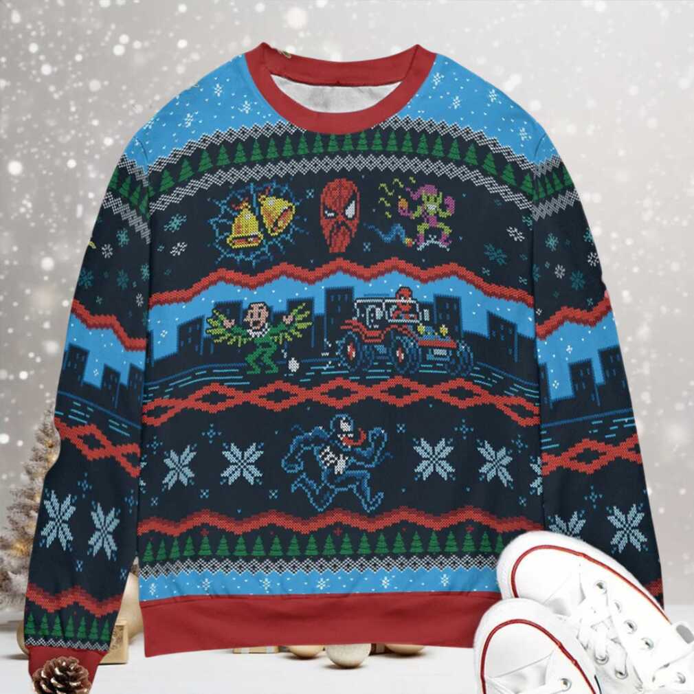 Imagine web-slinging through a snowy New York, but instead of fighting crime, Spiderman is just trying to enjoy the holidays. Then you hear it β that familiar, mischievous cackle. This “Spidey bells, Goblin smells Spiderman Green Goblin Marvel Character Ugly Christmas Sweatshirt” captures that playful rivalry in a festive, hilarious way. Itβs perfect for Marvel fans who want to bring a bit of superhero fun and a good laugh to their holiday celebrations, making it a standout piece at any festive gathering.