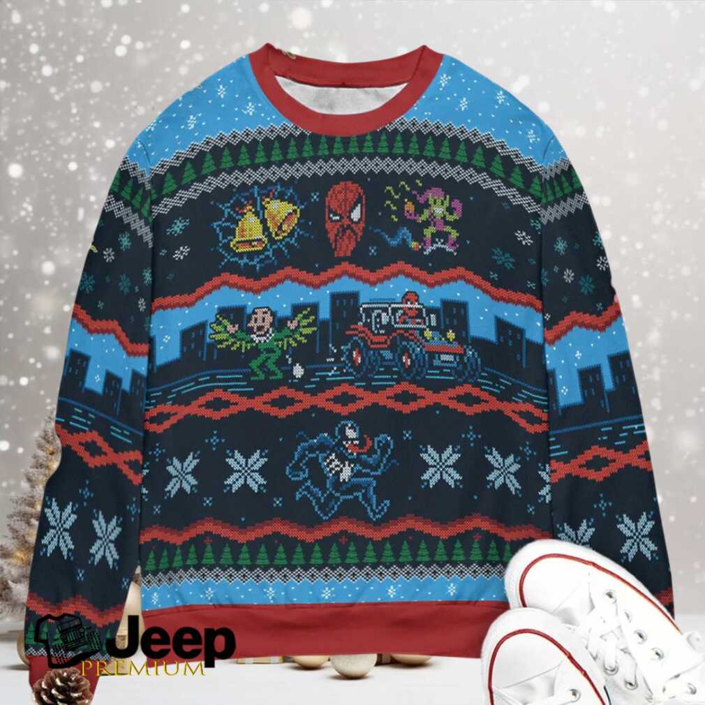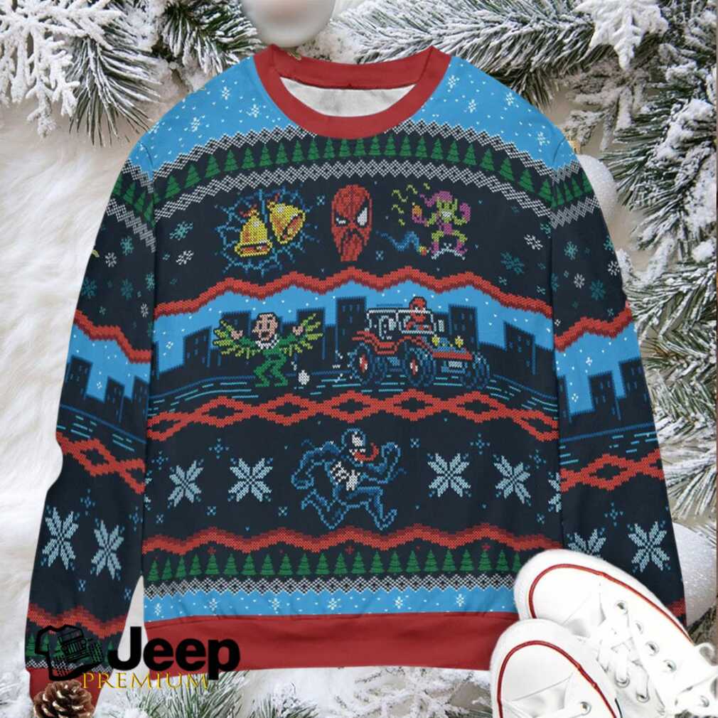 ‘Tis the season to be spooky…and hilarious! This Spidey Bells, Goblin Smells Ugly Christmas Sweatshirt mashes up your friendly neighborhood Spider-Man with his arch-nemesis, the Green Goblin, for a truly unique holiday design. Perfect for Marvel fans who like their Christmas with a side of supervillainy!
