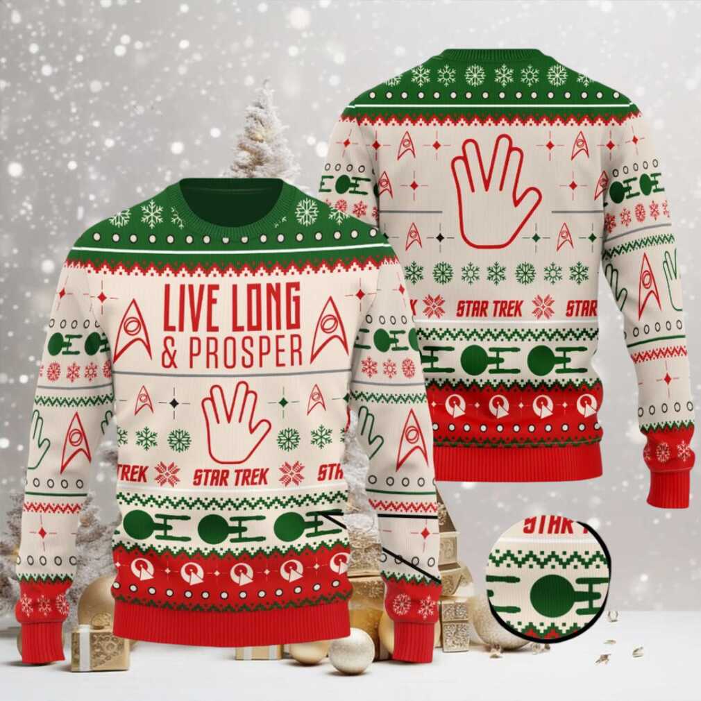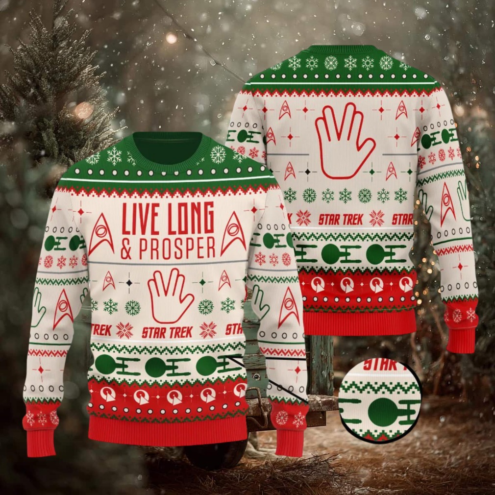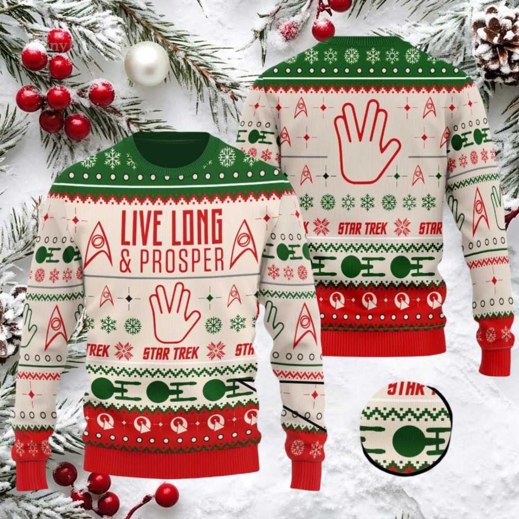 This unique Star Trek holiday sweatshirt features the iconic “Live Long & Prosper” Vulcan salute, cleverly integrated with festive elements like snowflakes and holiday colors. Crafted from a soft, comfortable fabric, it’s ideal for staying warm during winter movie marathons, attending casual holiday gatherings, or simply showcasing your devotion to the Star Trek universe’s rich history. Available in various sizes, it ensures every fan can find their perfect fit for a truly memorable holiday. This crewneck solves the problem of bland winter wear by offering a distinct and meaningful piece of sci-fi merchandise. It’s a fantastic conversation starter, a nod to a beloved franchise, and a cozy way to celebrate the festive season.