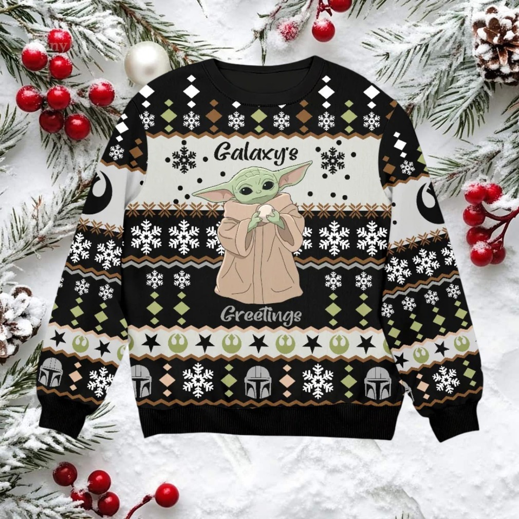 👕 About Star Wars The Mandalorian Grogu Galaxy's Greetings Ugly Christmas Sweater