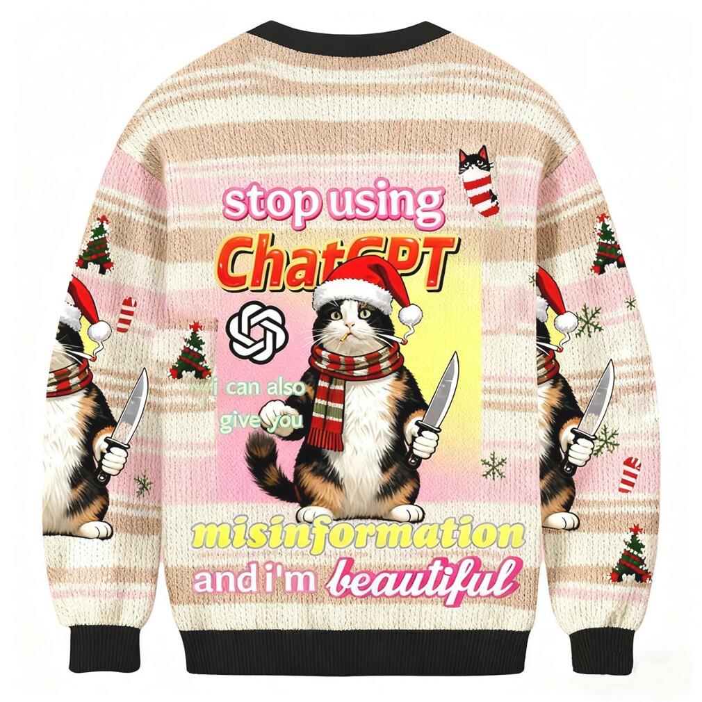 👕 About Stop Using ChatGPT Christmas Ugly Sweatshirt