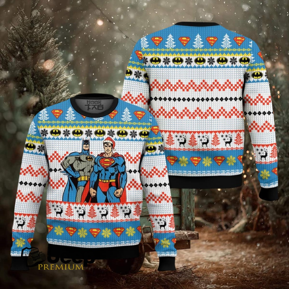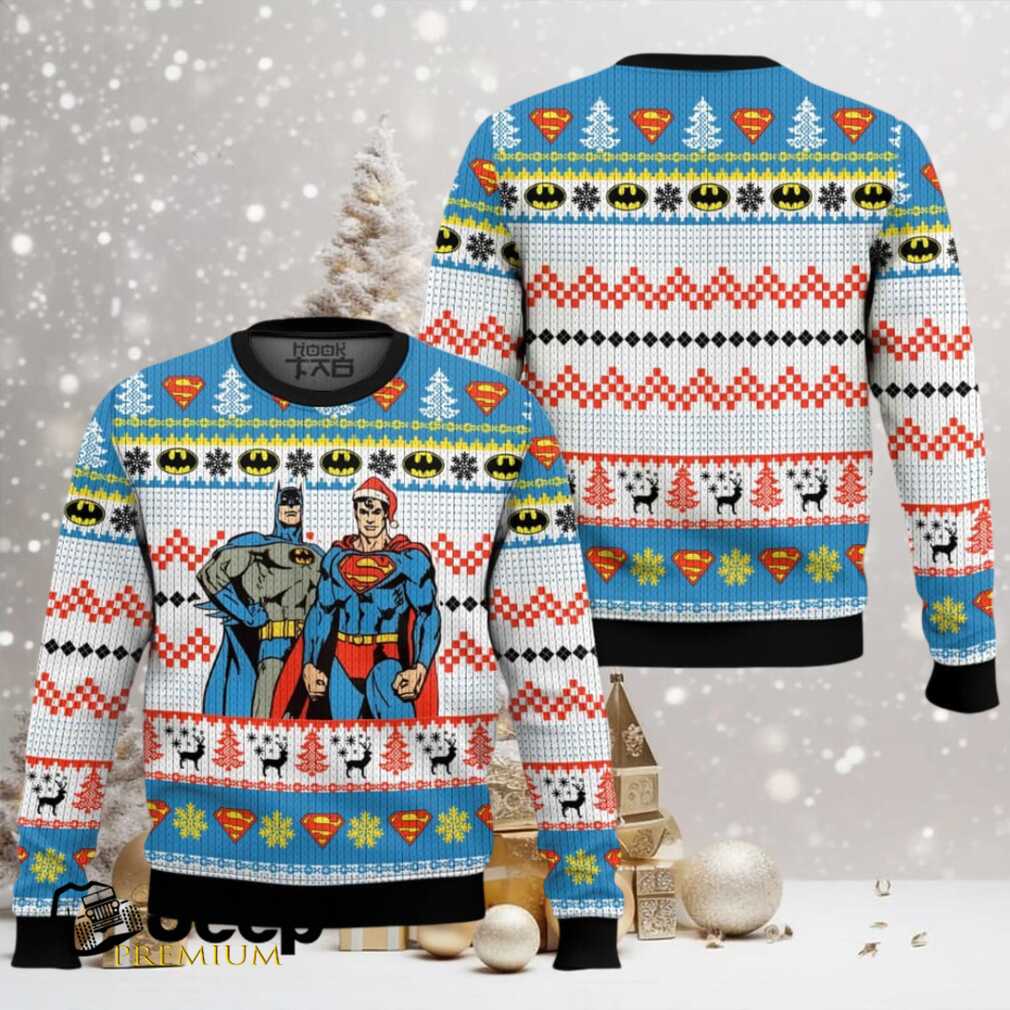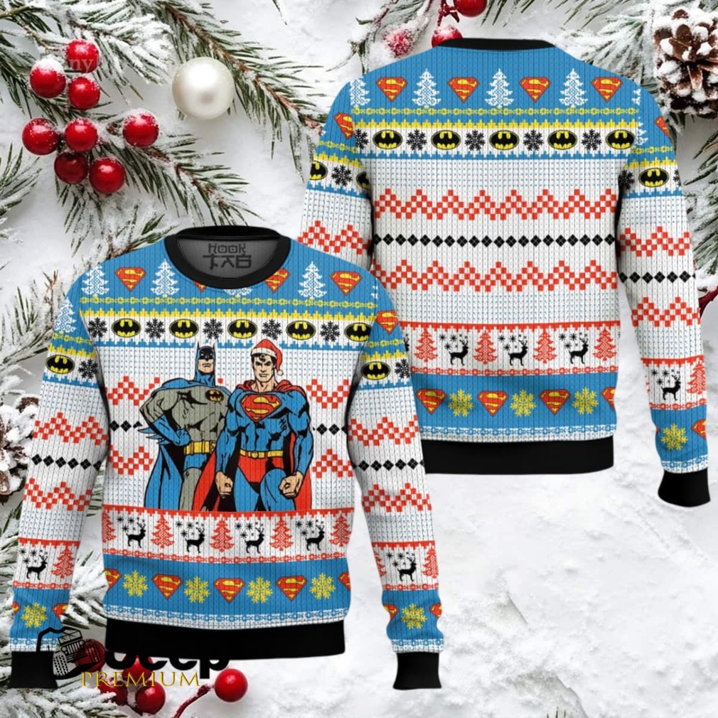 Product care instructions: To ensure your Superman And Batman Ugly Christmas Sweater stays in heroic condition, machine wash cold with similar colors. Tumble dry on a low heat setting. Avoid bleach and direct ironing on the design to keep its legendary charm intact.