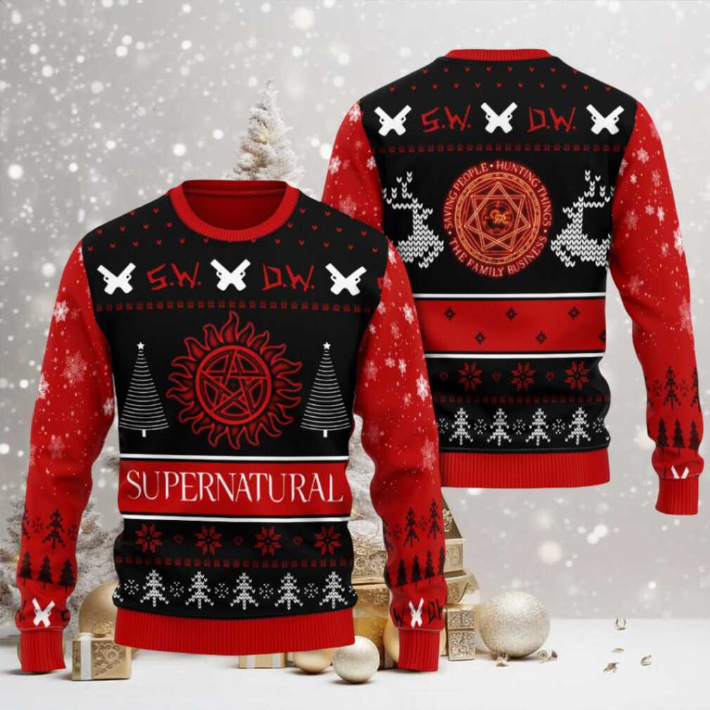 This Supernatural Saving People, Hunting Things Ugly Christmas Sweater is for every dedicated fan of the series who wants to infuse their holiday season with a touch of the paranormal. It’s an ideal choice for attending an “ugly Christmas sweater” party, watching a Supernatural marathon with friends, or simply spreading some Winchester charm during the holidays. Looking for a thoughtful gift? Any Supernatural enthusiast would be thrilled to receive this unique and spirited holiday apparel.