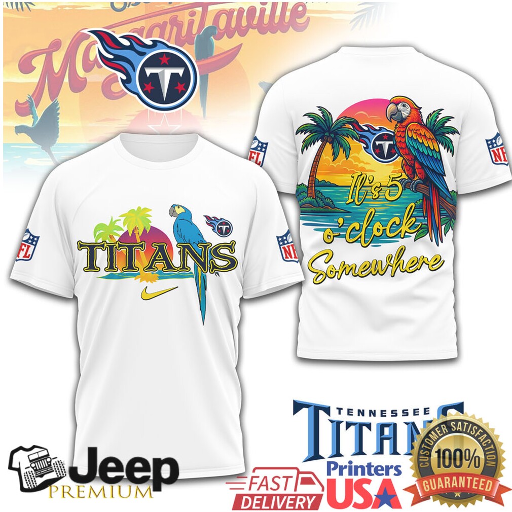 ()Tennessee Titans It’s 5 O’Clock Somewhere Tropical Parrot Beach T Shirt, Treat yourself or make a great gift for your loved ones
