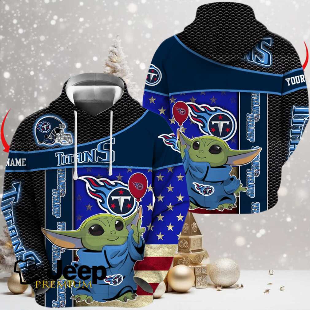 👕 About Tennessee Titans x Baby Yoda Holding Baloon Football Hoodie 3D Custom Name