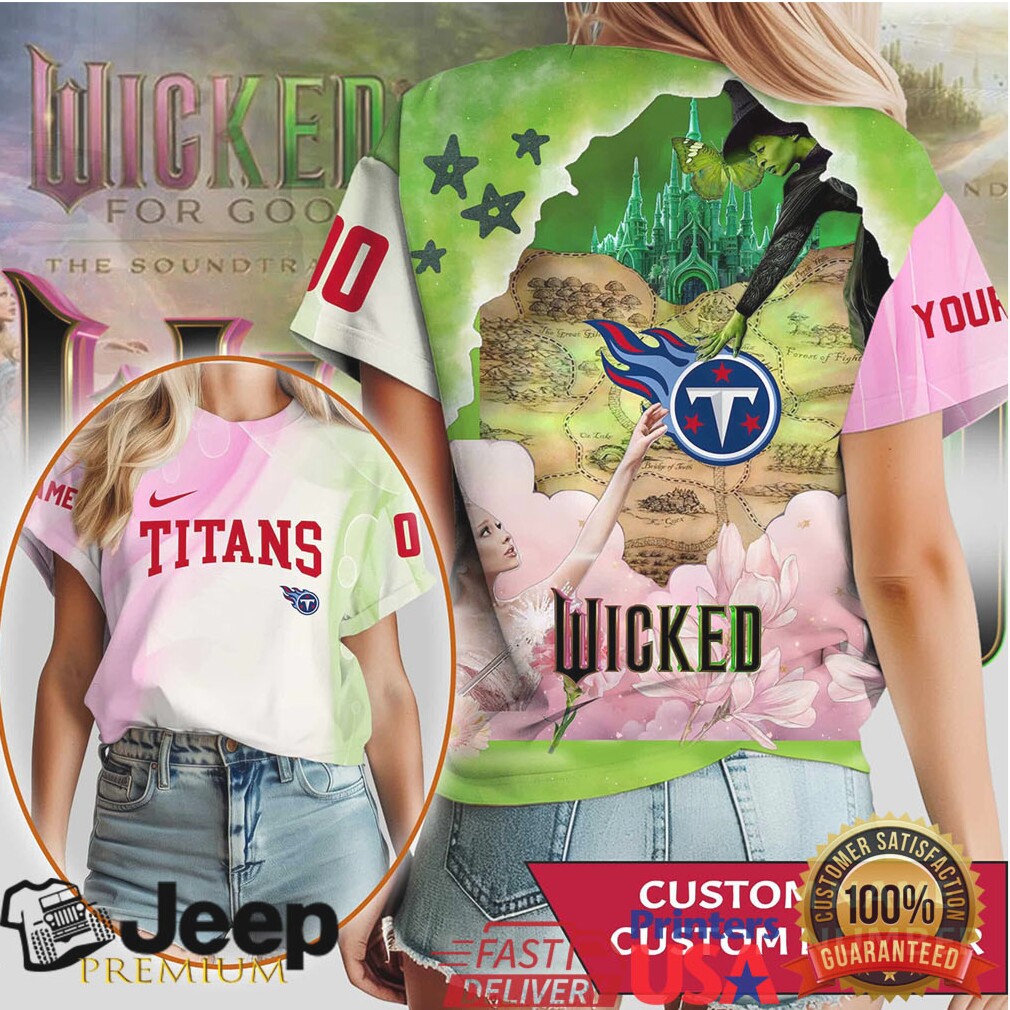 (Tennessee Titans x Wicked Glinda Pink & Elphaba Green Custom T Shirt)Tennessee Titans x Wicked Glinda Pink & Elphaba Green Custom T Shirt, Treat yourself or make a great gift for your loved ones