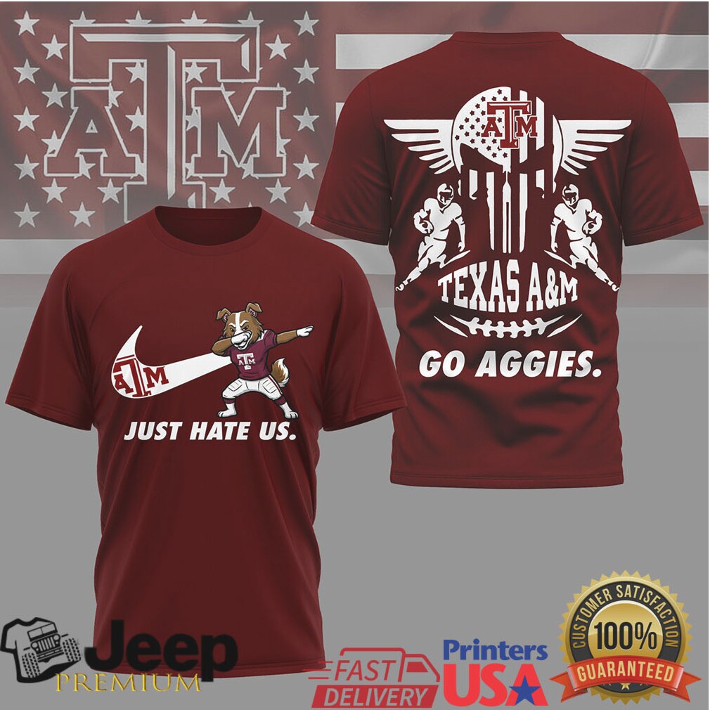(Texas A&M Aggies Just Hate Us Dabbing Reveille Mascot Skull T Shirt)