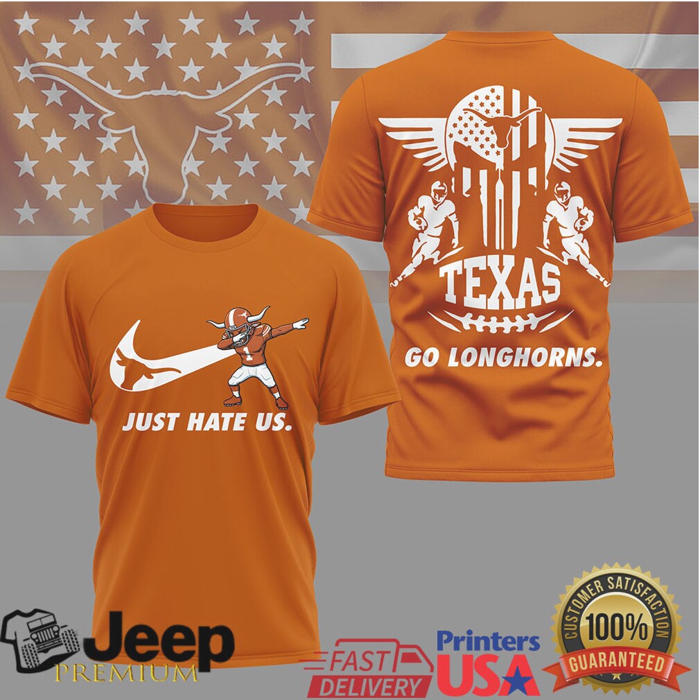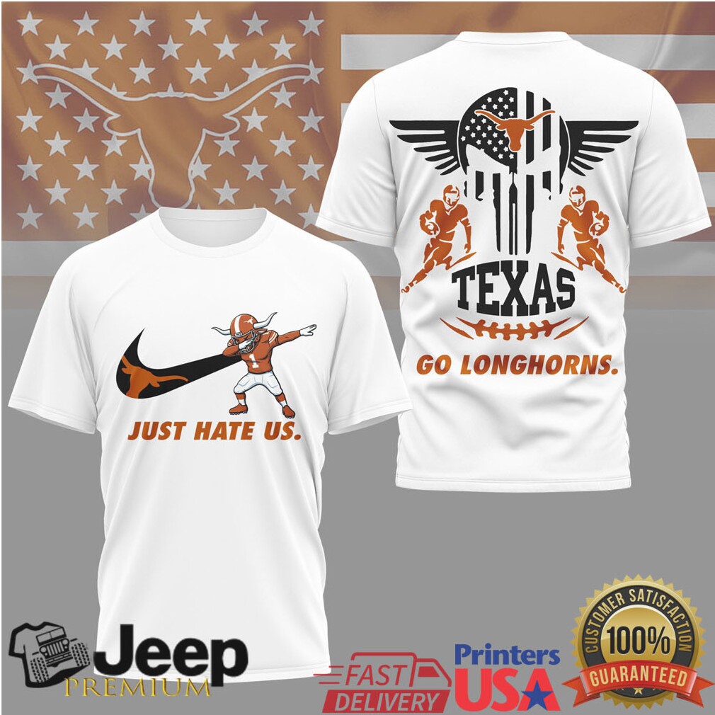 (Texas Longhorns Just Hate Us Hook ‘Em Horns Punisher Skull T Shirt)