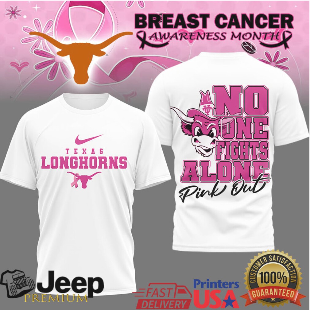 ()Texas Longhorns No One Fights Alone Breast Cancer Awareness Pink Out T Shirt, Treat yourself or make a great gift for your loved ones
