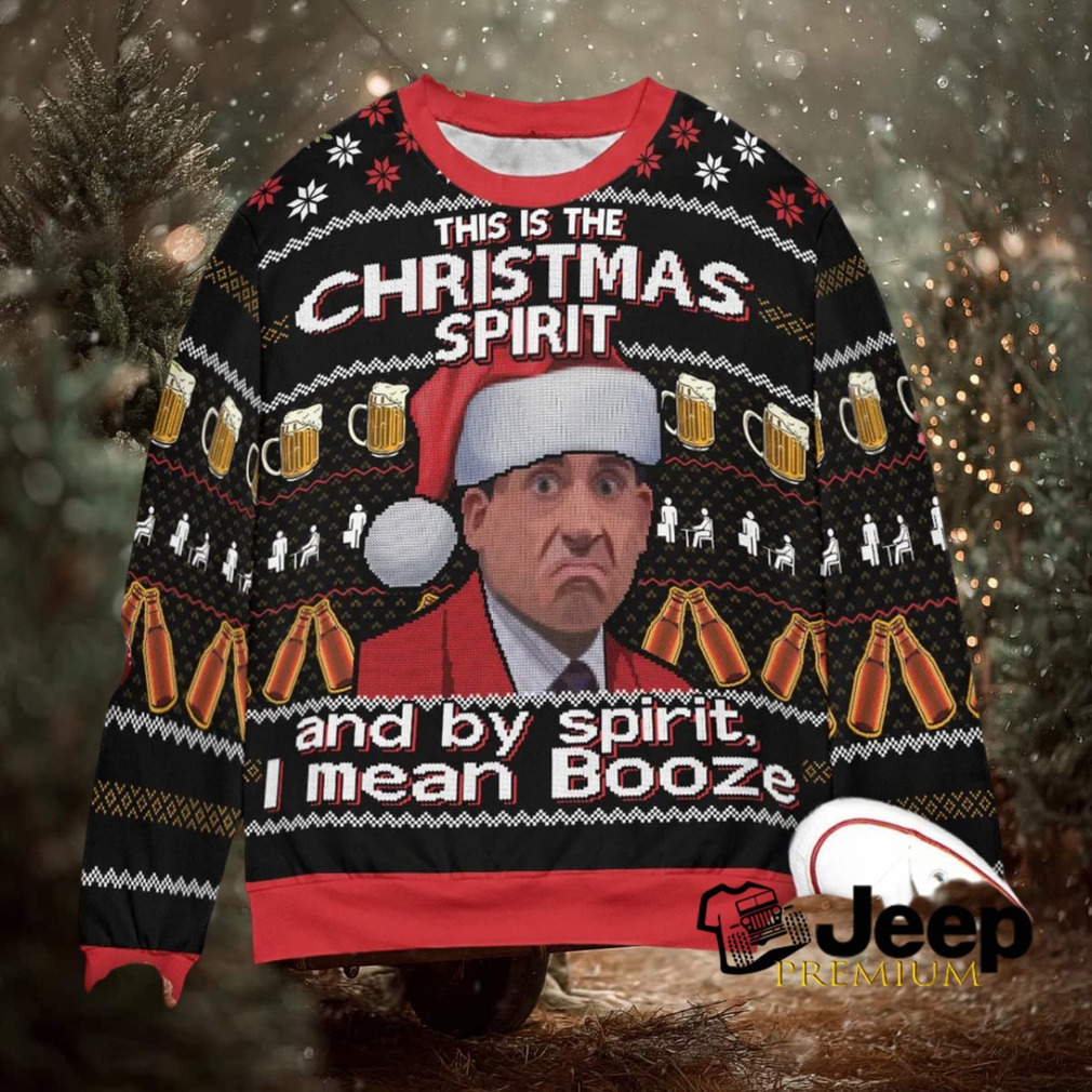 👕 About The Christmas Spirit Booze Michael Scott The Office Ugly Christmas Sweatshirt
