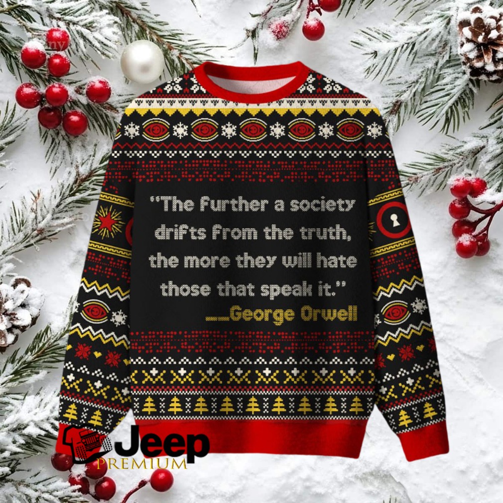 Dare to make a statement this holiday season? ‘The Further A Society Ugly Christmas Fuzzy Fleece Sweatshirt’ isn’t your typical festive wear. Itβs a conversation piece, a thought-provoker, and a comfy way to challenge the status quo at your next Christmas gathering. Wear your intellect on your sleeveβliterally.