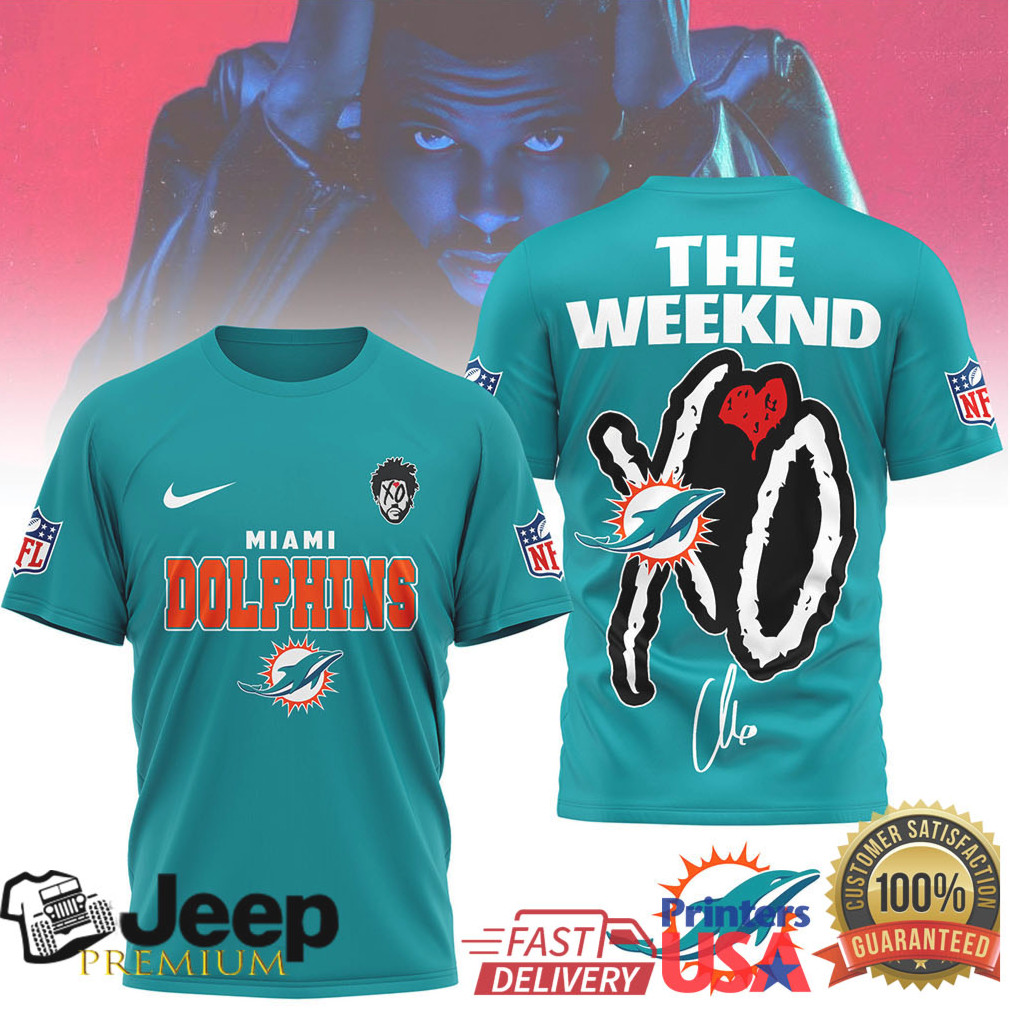 ()The Weeknd XO x Miami Dolphins NFL Aqua XO Logo Collaboration T shirt, Treat yourself or make a great gift for your loved ones