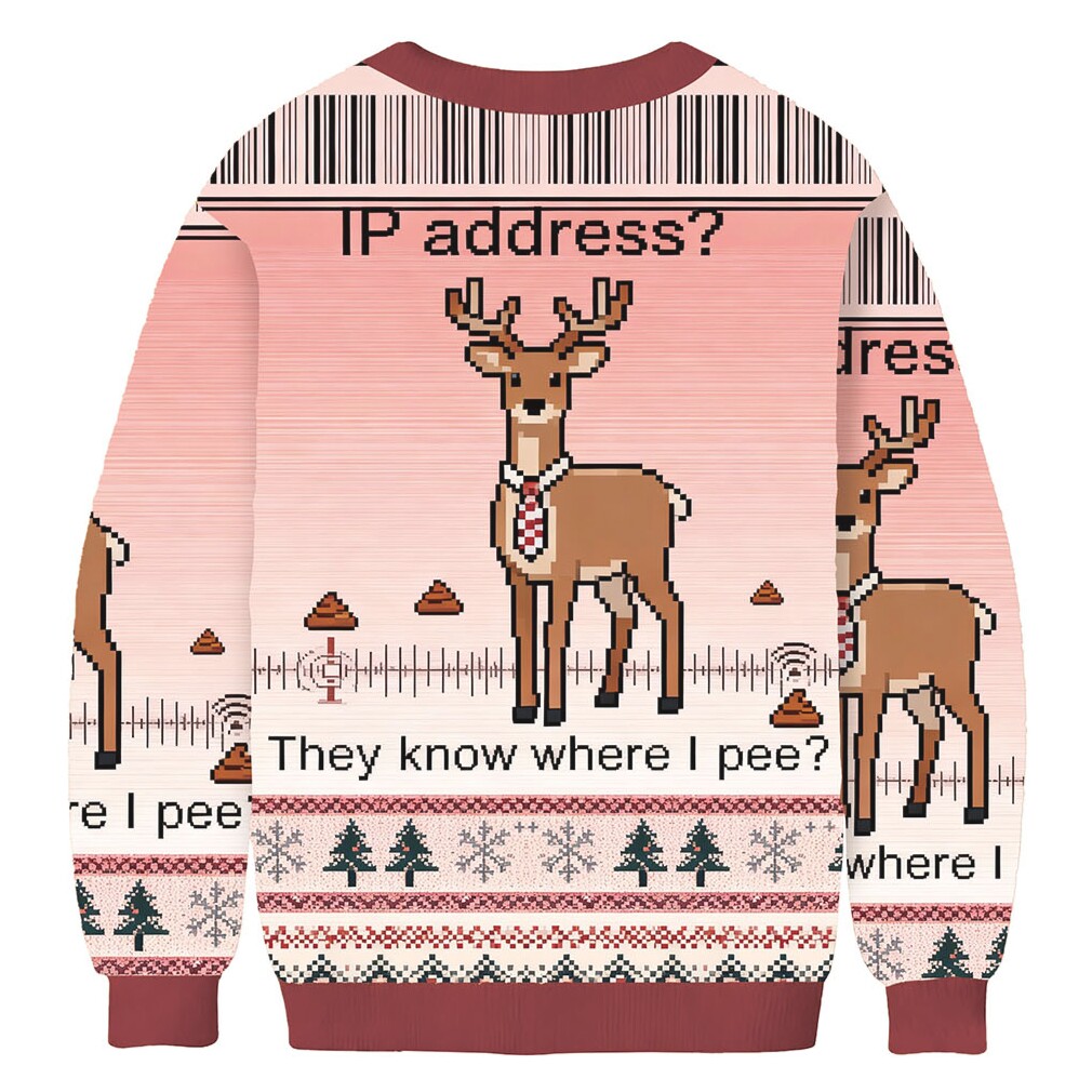 The They Know Where I Pee Christmas Ugly Sweatshirt is tailor-made for those who love sarcastic humor, enjoy being the center of attention, or are searching for the ultimate gag gift. It’s an excellent choice for winning an ugly Christmas sweater contest with originality, for casual holiday parties with friends, or simply for lounging at home with a knowing smirk. This distinctive piece is for anyone who isn’t afraid to embrace the lighter, more absurd side of the holiday season. The second image provides a closer look at its comfortable and eye-catching style.