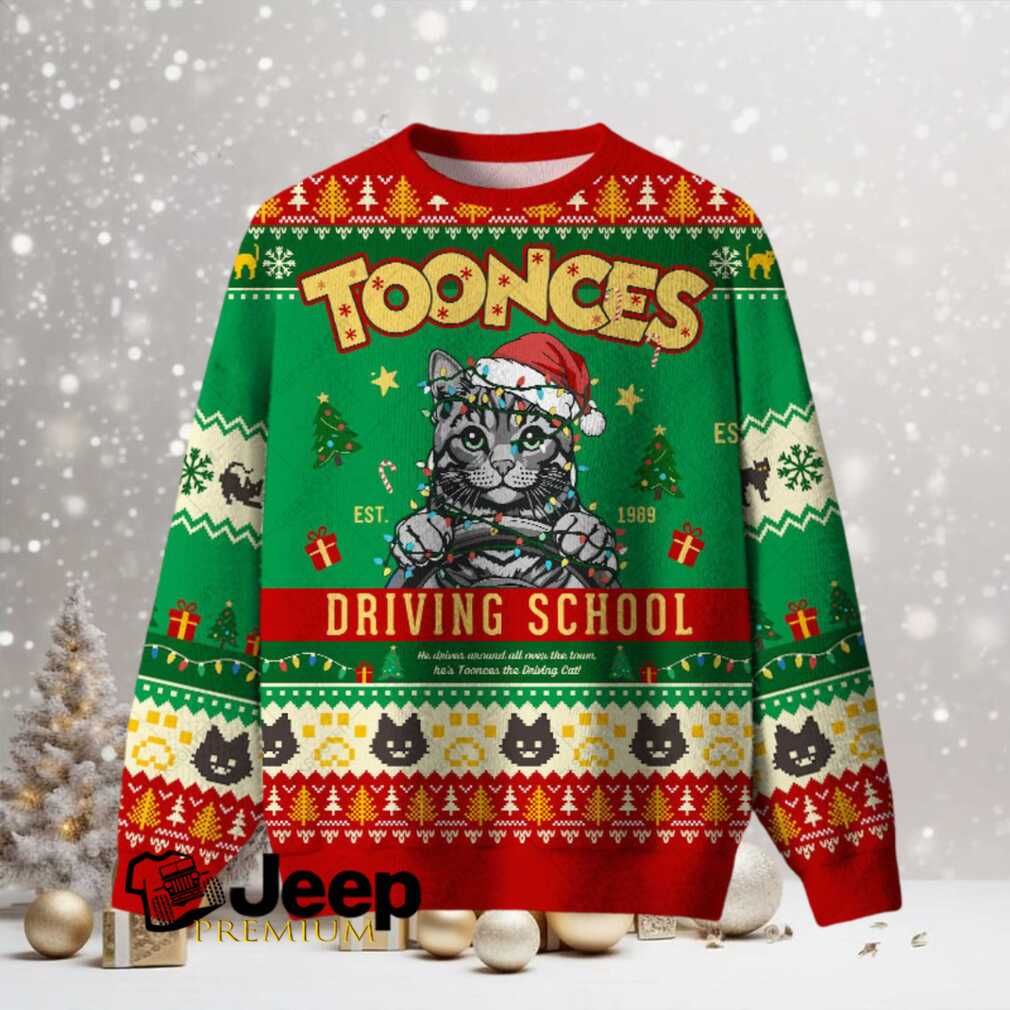 He drives around town… he drives all over! This “Toonces the Driving Cat Ugly Christmas Fuzzy Fleece Sweatshirt” is a must-have for any true SNL fan. Combine your love for comedy and felines this holiday season with this hilarious and unique design. It’s purr-fect for spreading laughter and Christmas cheer (even if Toonces might drive you off a cliff!).