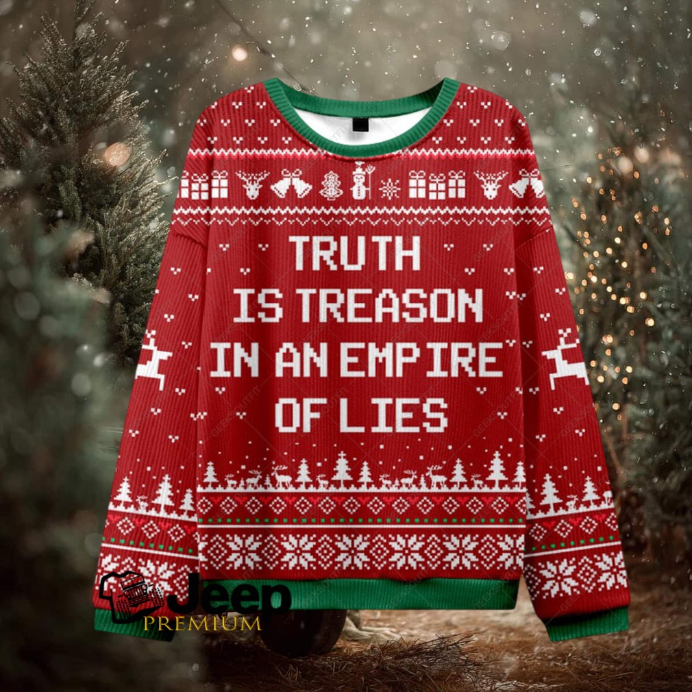 Ready to stir up some holiday controversy? The “Truth Is Treason Ugly Christmas Fuzzy Fleece Sweatshirt” is here to help you do just that! This sweatshirt isn’t about sugar plums and candy canes; it’s for those who like their Christmas with a side of political satire and a whole lot of dark humor. Get ready to be the most talked-about guest at your next holiday gathering!