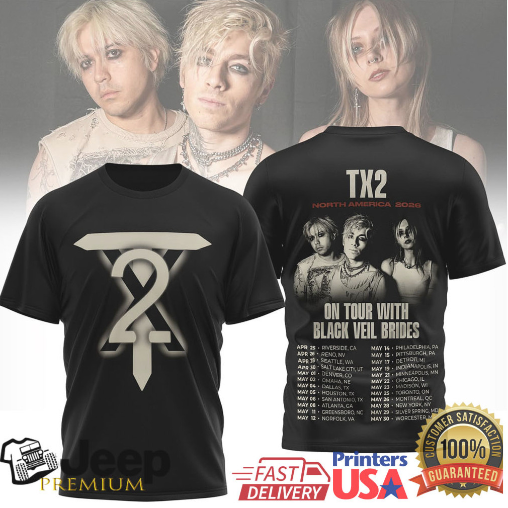 (TX2 On Tour With Black Veil Brides North America 2026 Concert Shirt)TX2 On Tour With Black Veil Brides North America 2026 Concert Shirt, Treat yourself or make a great gift for your loved ones