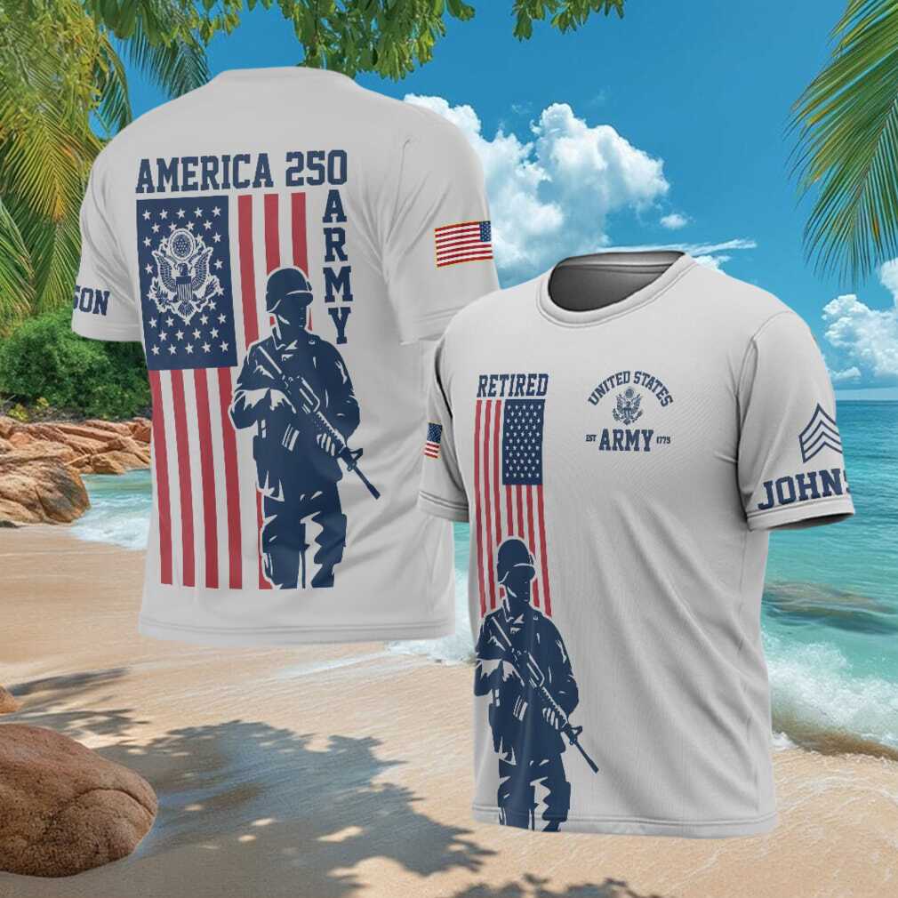 ()US Army America 250 Semiquincentennial Soldier Silhouette Custom Name T Shirt, Treat yourself or make a great gift for your loved ones