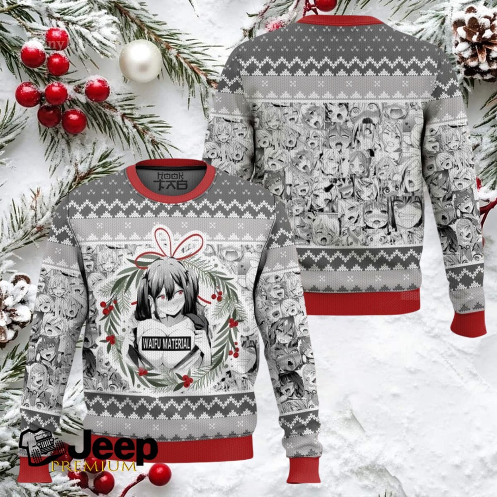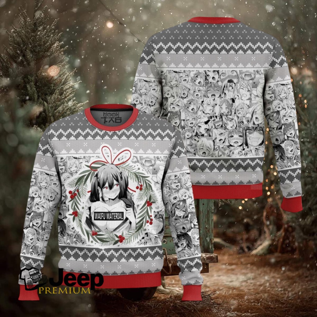 👕 About Waifu Material Ahegao Ugly Christmas Sweater