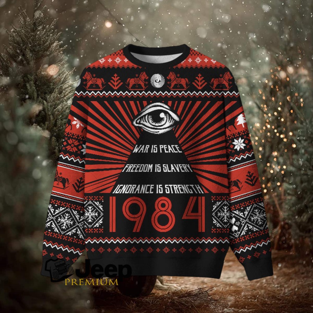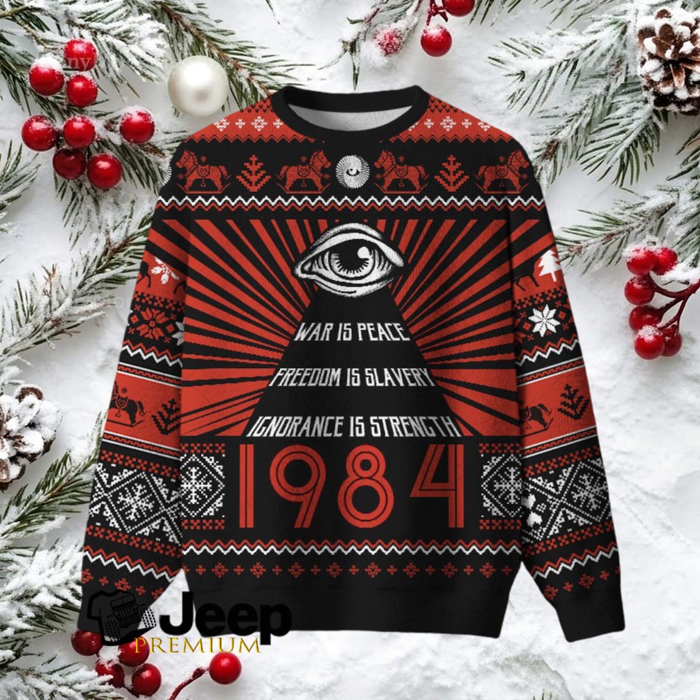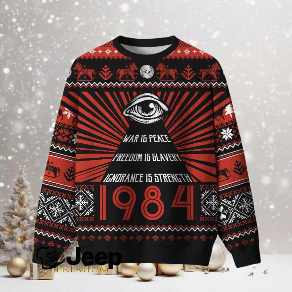 This sweatshirt features the paradoxical phrase “War Is Peace” in a festive Christmas design. The fuzzy fleece material ensures a cozy and comfortable fit, perfect for chilly winter evenings. It’s an ideal choice for those who enjoy political satire, literary references, or just want an ugly Christmas sweater that makes people think. This unisex sweatshirt offers a relaxed fit and is available in a range of sizes.