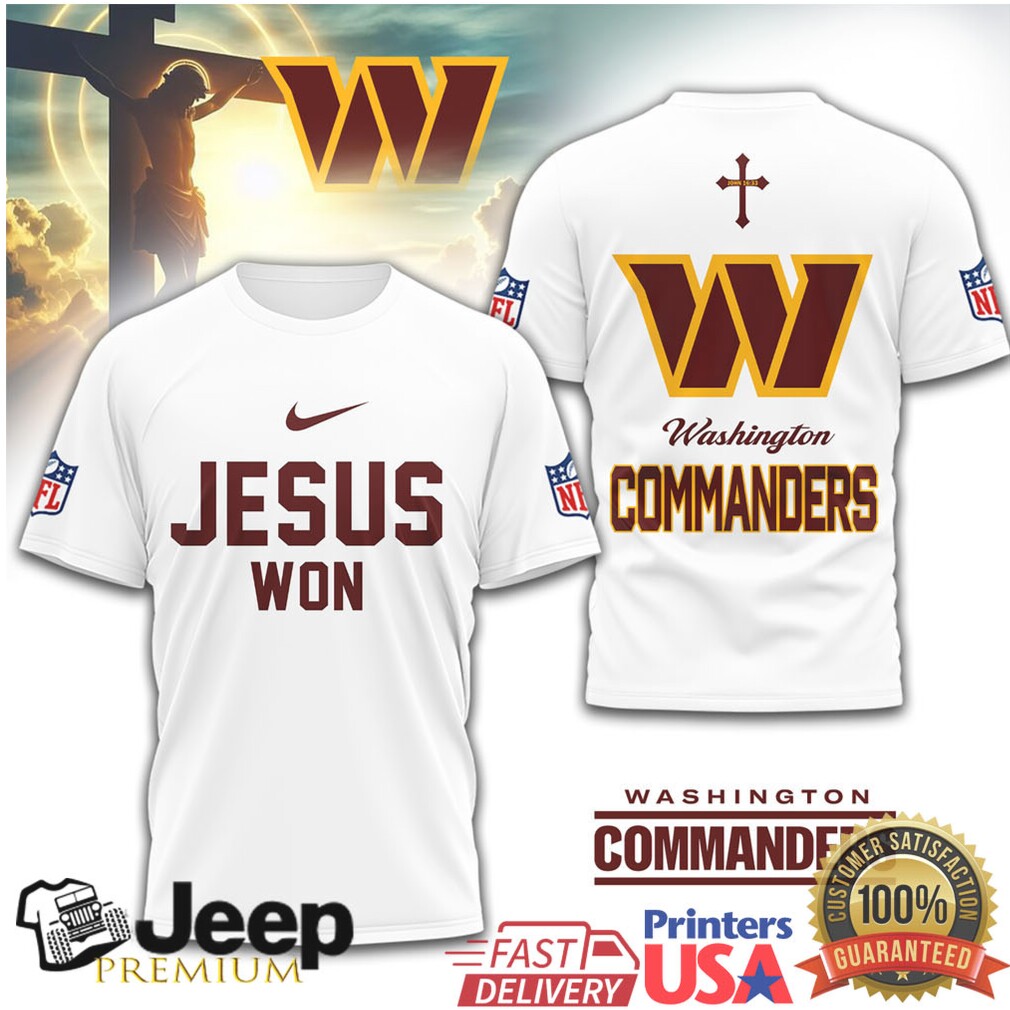 👕 About Washington Commanders Jesus Won Christian Faith Football T Shirt