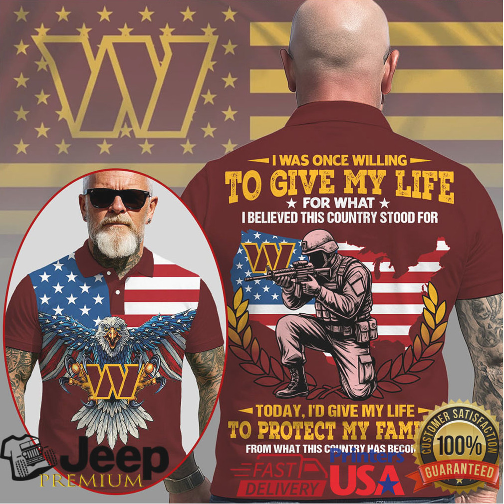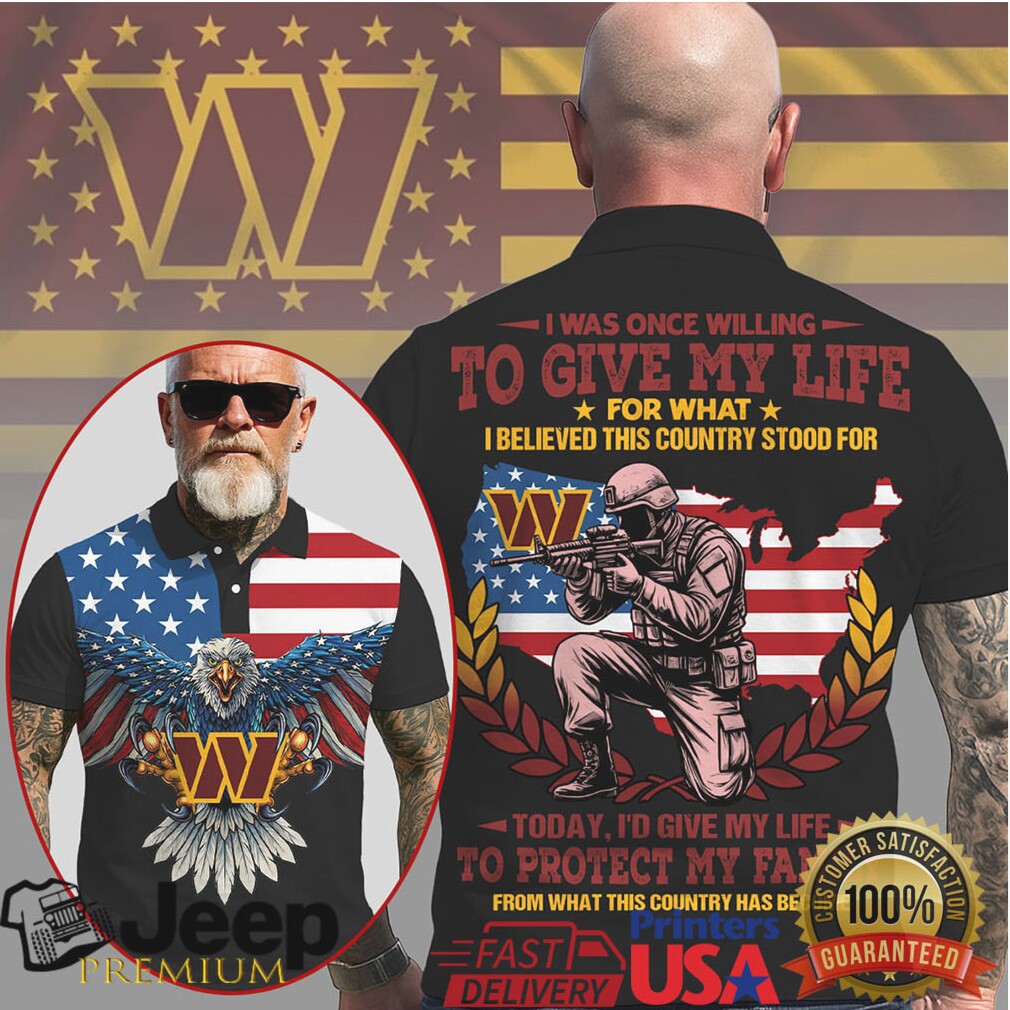 Honor those who serve and protect with this powerful Washington Commanders patriotic tribute tee. Featuring a bold military-inspired design with an American eagle and heartfelt soldier quote, this shirt is a proud salute to veterans and their families. Perfect for Memorial Day, Veterans Day, or any day you want to show your pride for both your team and your country.