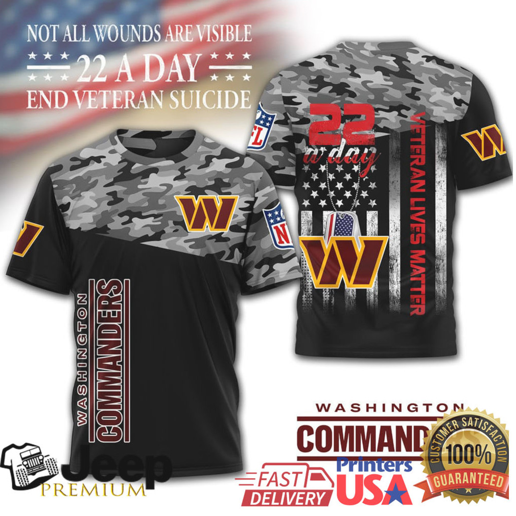 (Washington Commanders Veteran Awareness T Shirt 22 A Day End Veteran Suicide Camo)