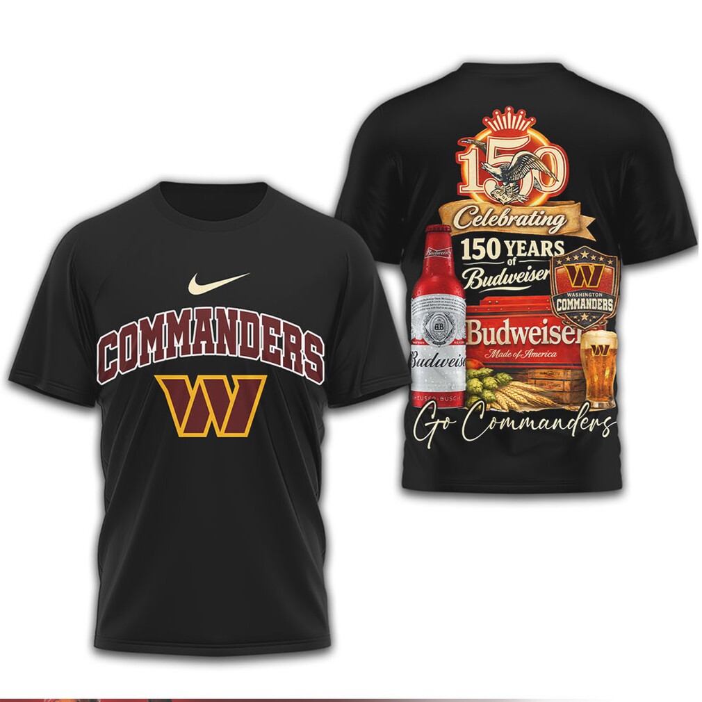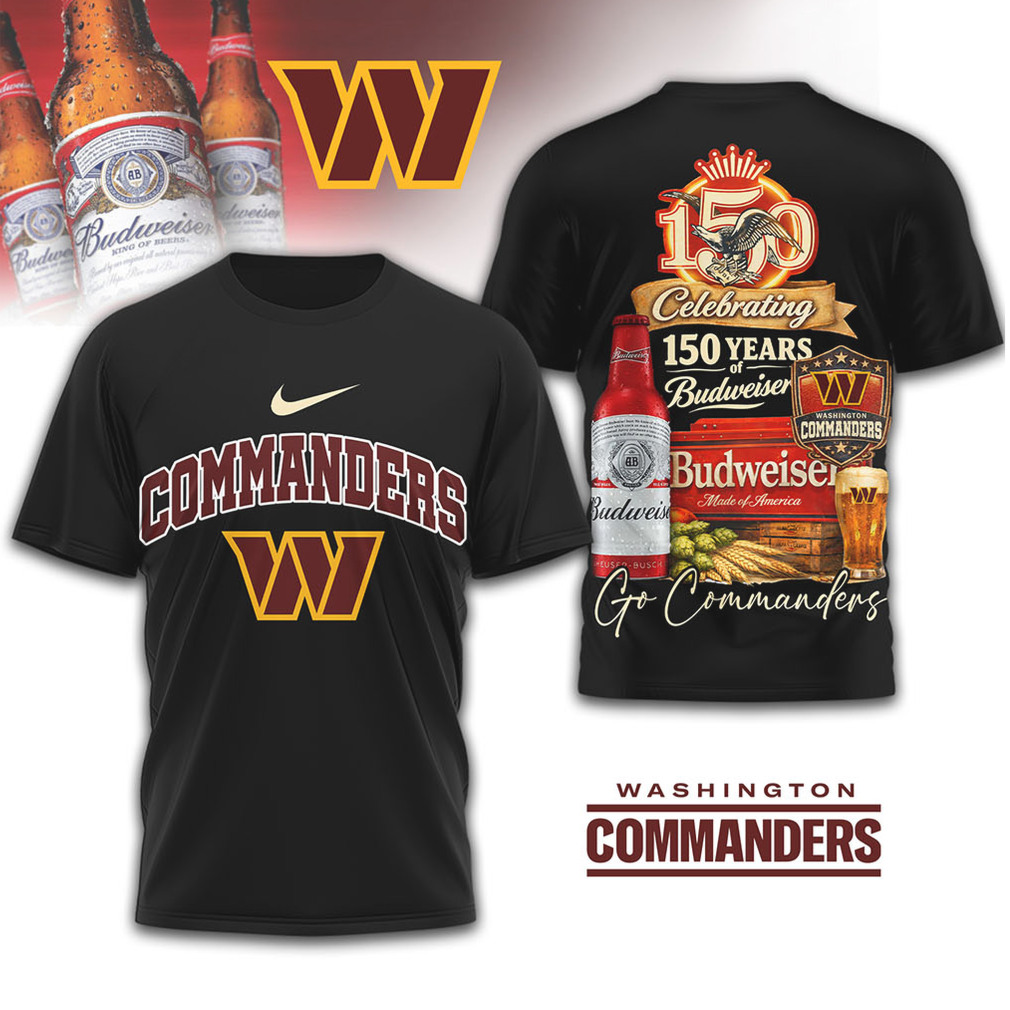 ()Washington Commanders x Budweiser 150 Years Anniversary Beer & Football Tee, Treat yourself or make a great gift for your loved ones
