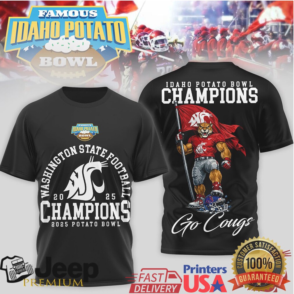 Washington State Cougars Official Ncaa 2025 Idaho Potato Bowl Champions 3D Shirt, Sport Hoodie and Sport Shirt