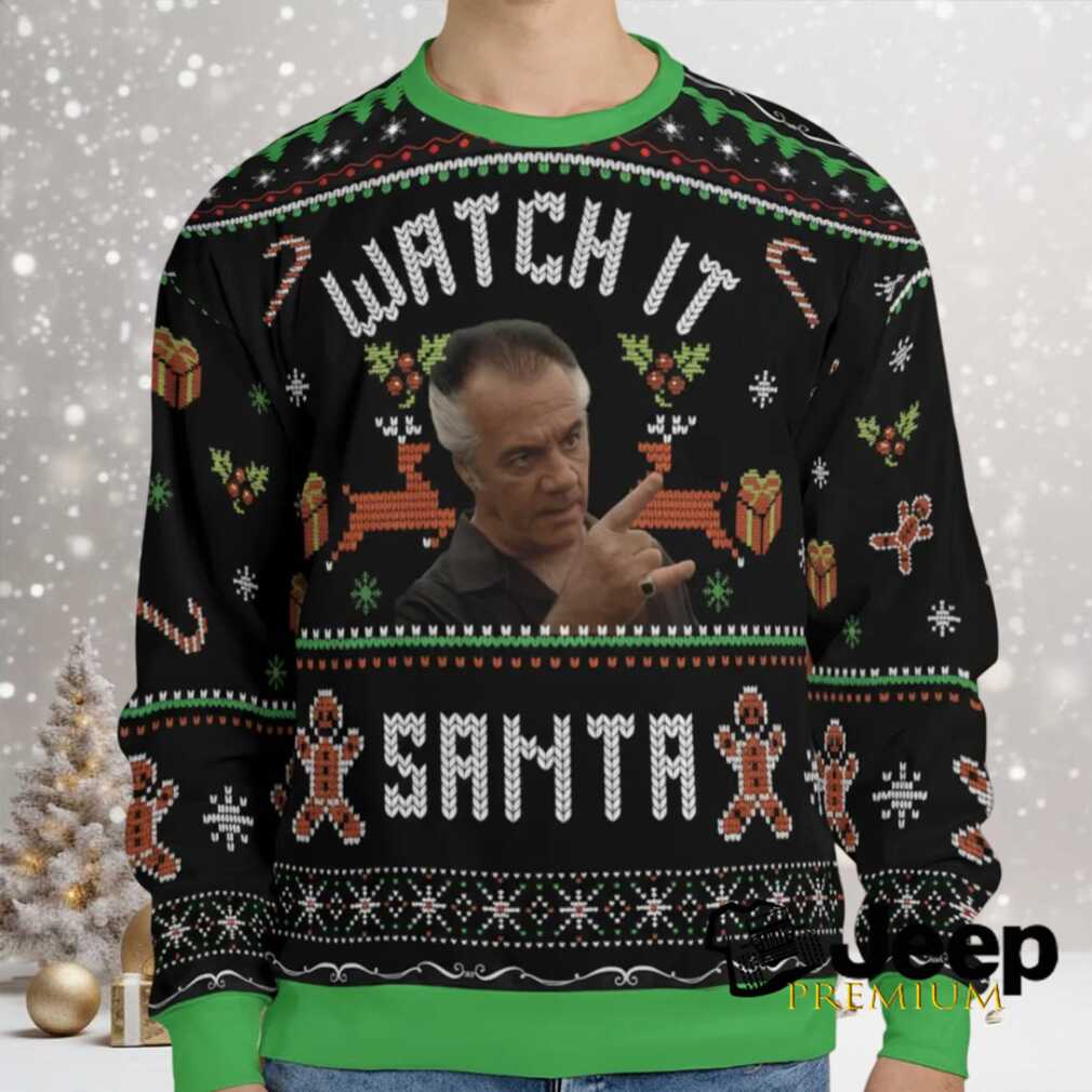 Imagine settling in for the holidays, but instead of sugar plums, you’re dreaming of Bada Bing and family gatherings with a certain *gravitas*. This “Watch It Santa The Sopranos Ugly Christmas Sweatshirt” brings a darkly humorous, iconic touch to your festive wardrobe. It’s the perfect way for fans to celebrate Christmas with a nod to their favorite New Jersey family. If you’re tired of predictable holiday attire and want to make a statement that’s both festive and a little bit gangster, this Sopranos ugly Christmas sweatshirt is your go-to.