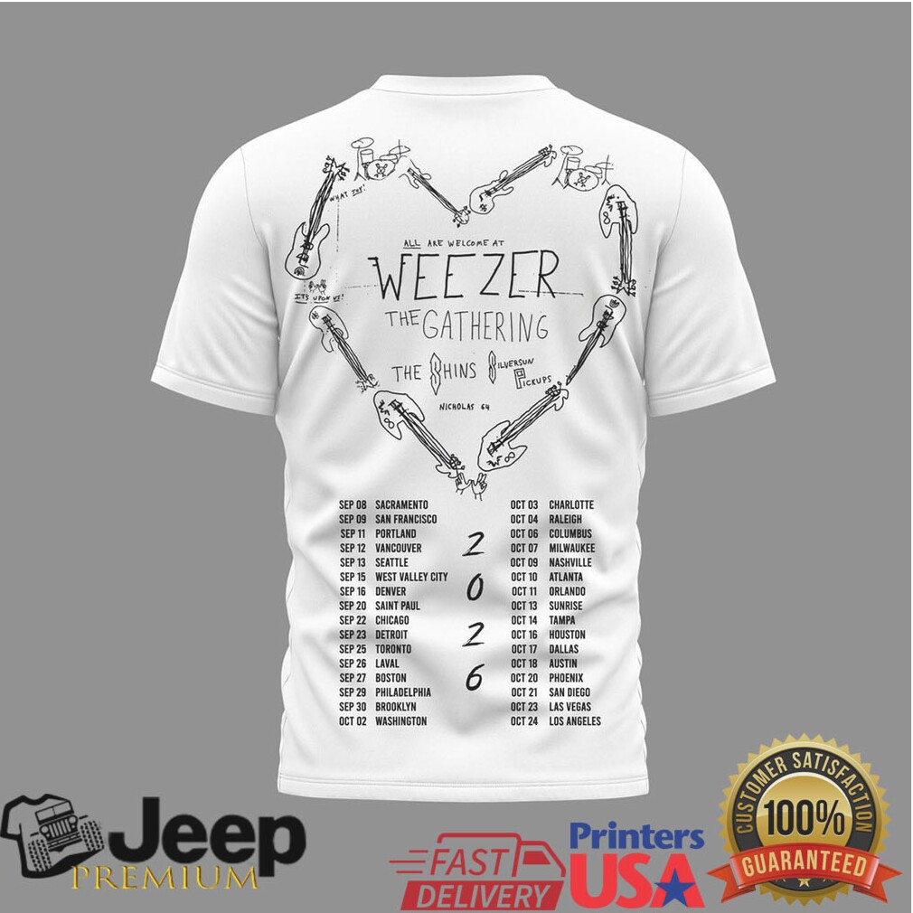 Weezer The Gathering Tour 2026 White Graphic T Shirt Artist Collaboration