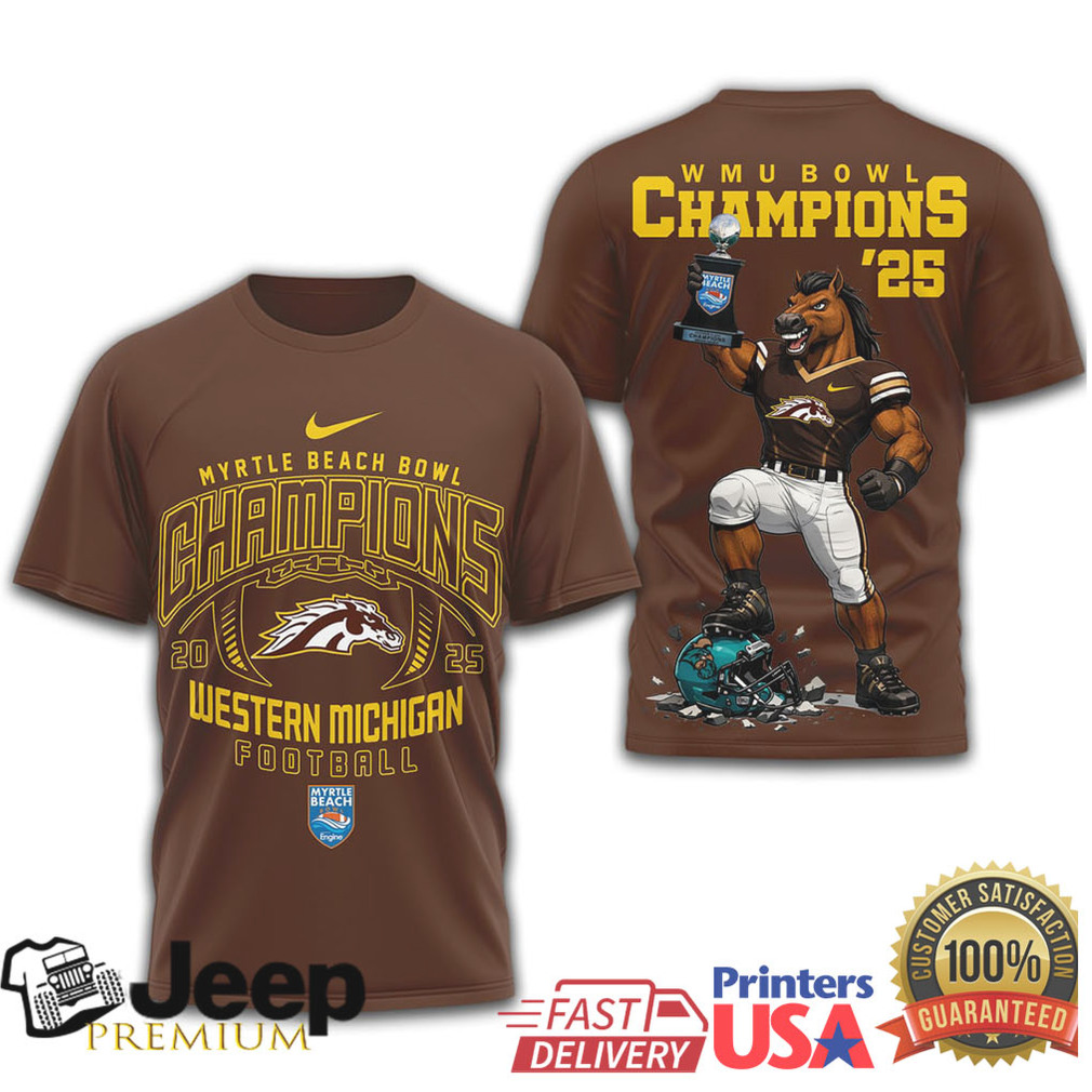 Western Michigan Broncos Official Ncaa Myrtle Beach Bowl Champions 2025 3D Shirt, Sport Hoodie and Sport Shirt