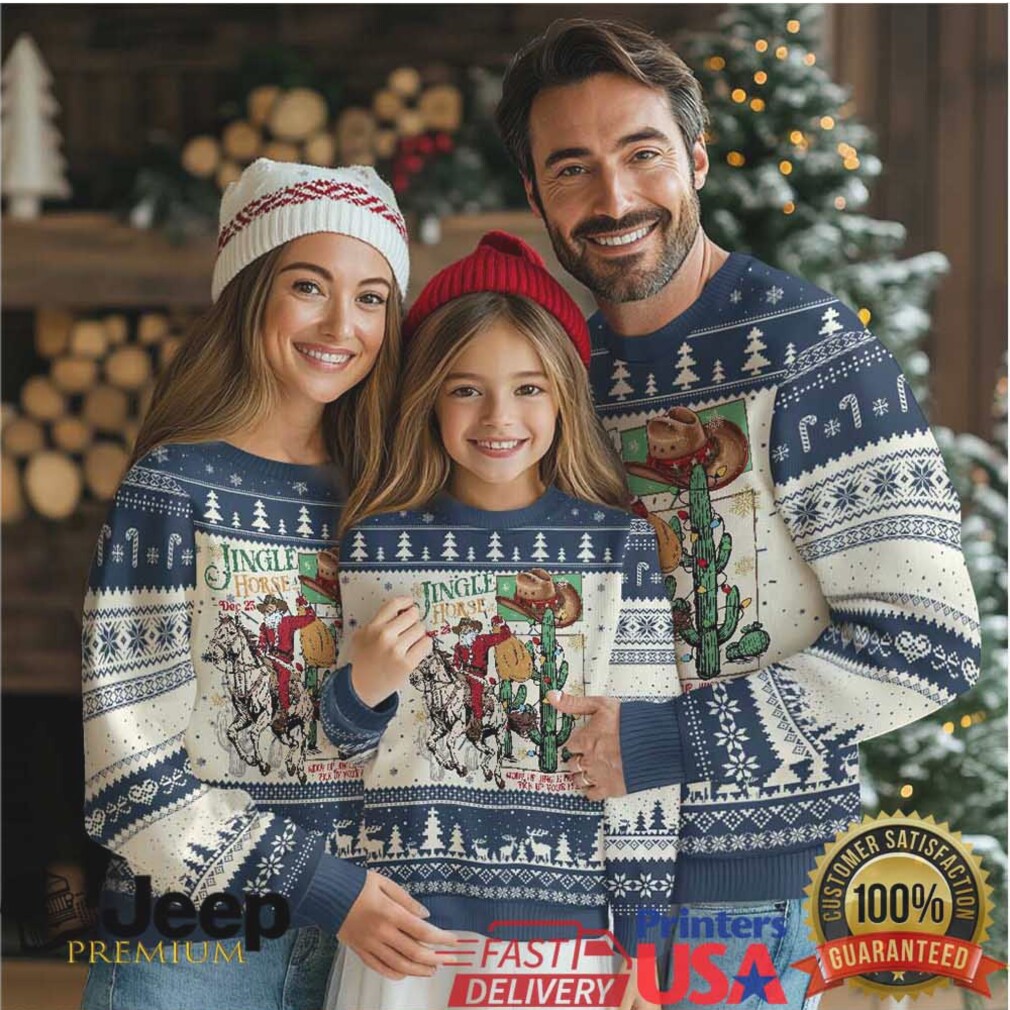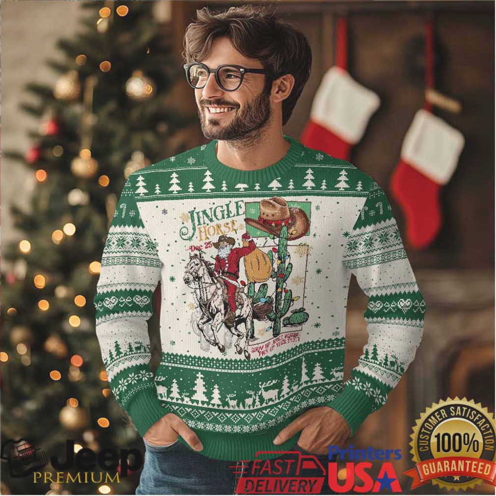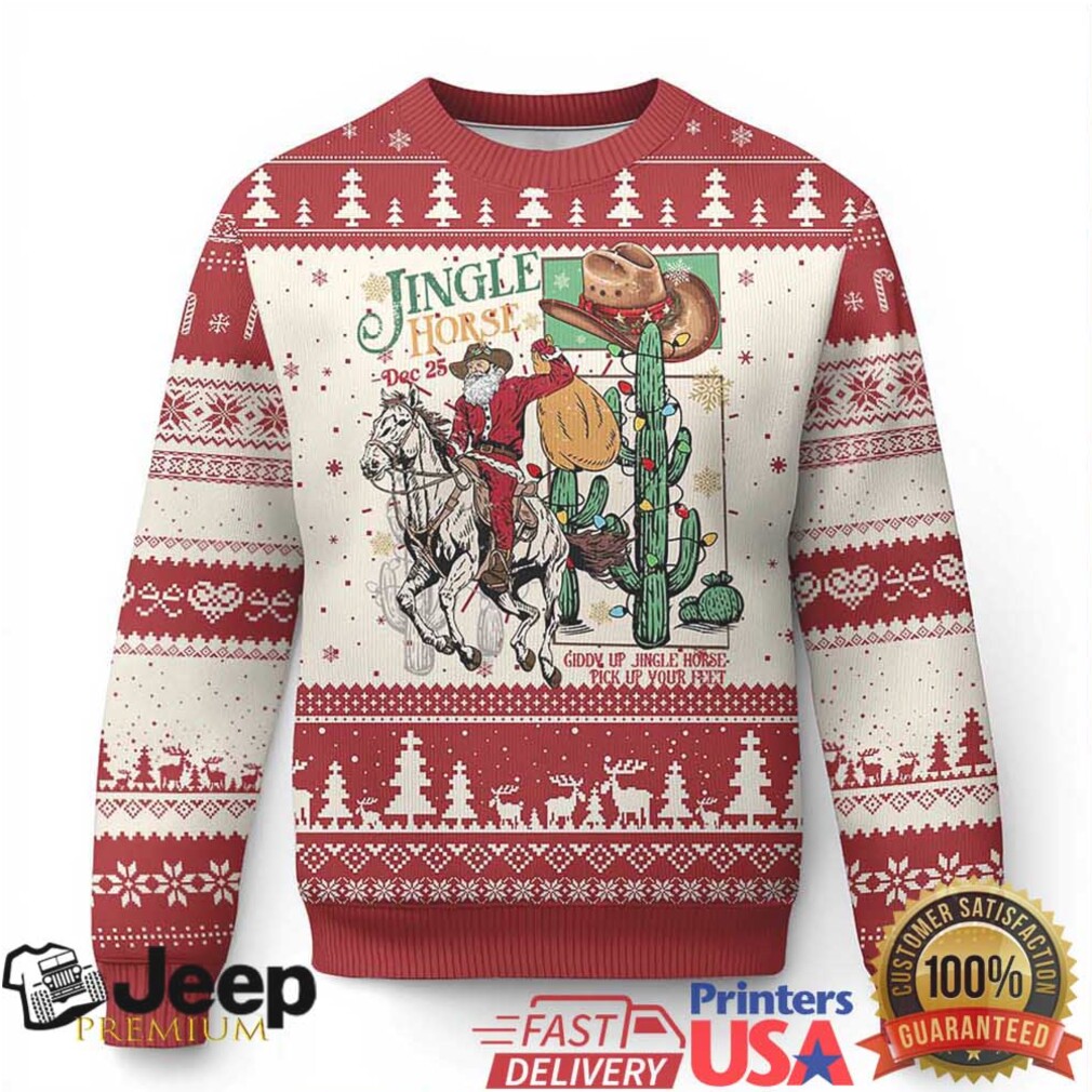 👕 About Western Xmas Ugly Christmas Sweater Jingle Horse Pick Up Your Feet Cowboy Santa Rider