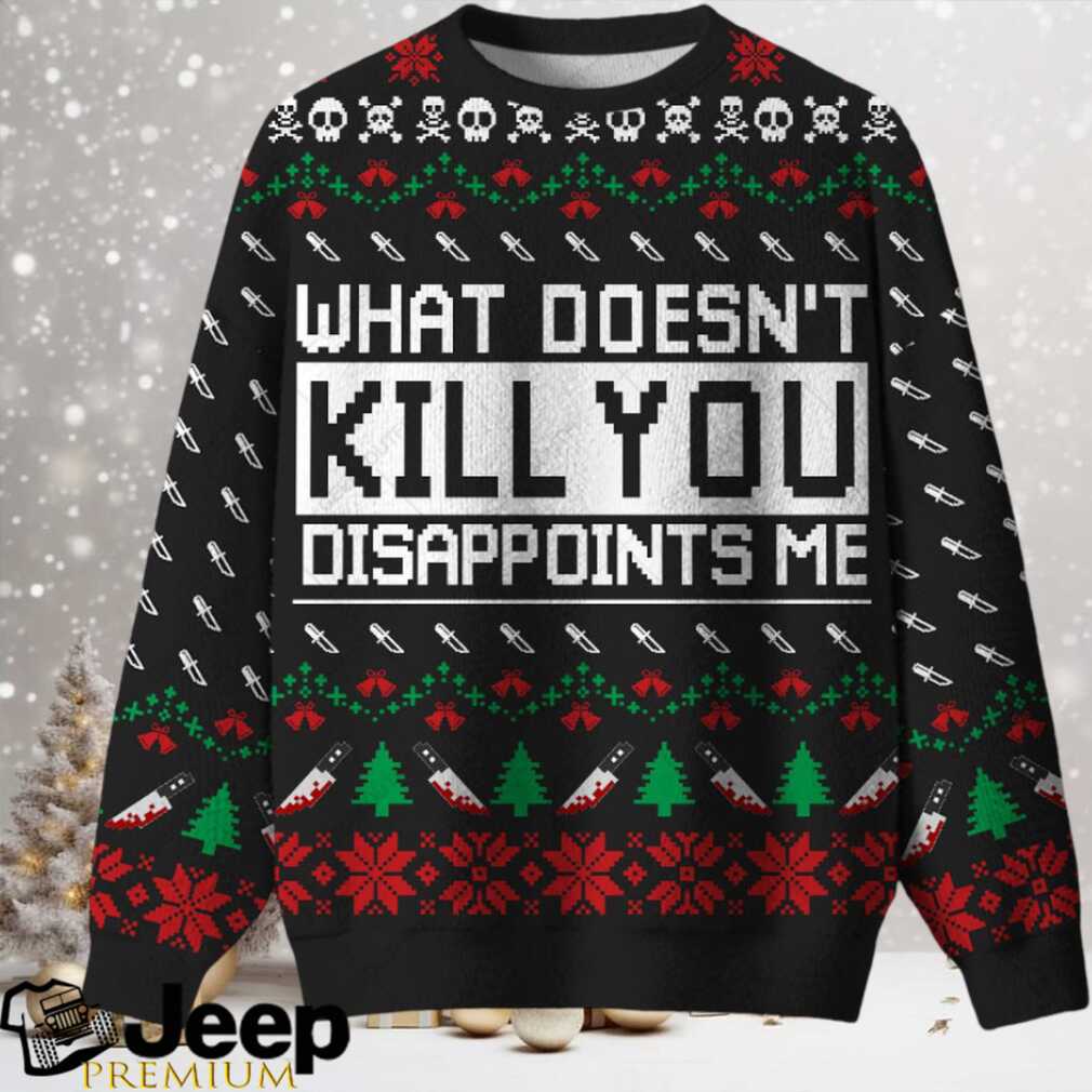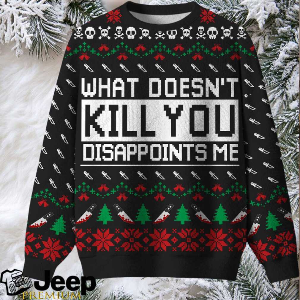 It was the annual office Christmas party. Everyone was wearing the same generic reindeer sweaters and Santa hats. Then, BAM! You walk in with this sweatshirt, and suddenly the room erupts with laughter. You’re the life of the party, the king or queen of Christmas sarcasm. This “What Doesn’t Kill You Disappoints Me” sweatshirt isn’t just clothing; it’s a statement.