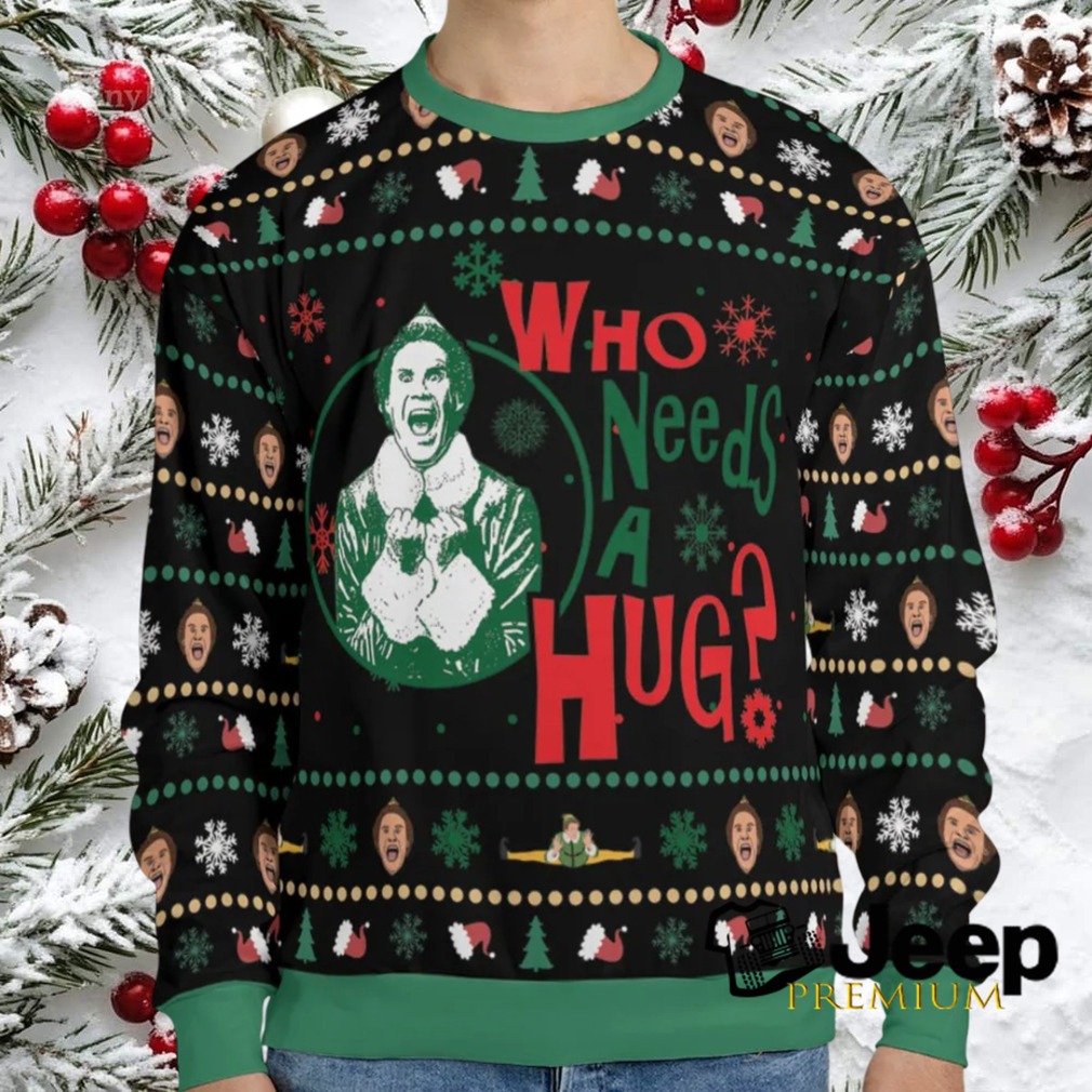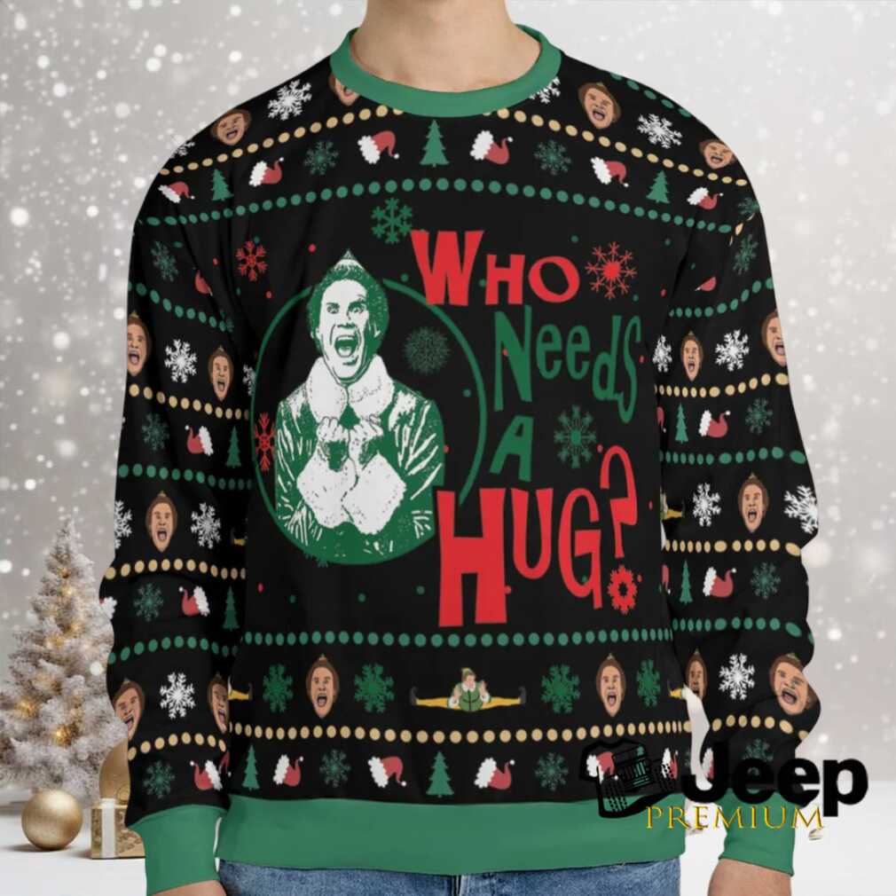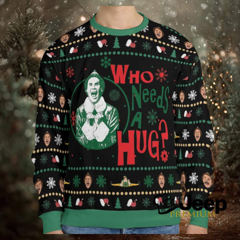 👕 About Who Needs A Hug ELF Ugly Christmas Sweatshirt