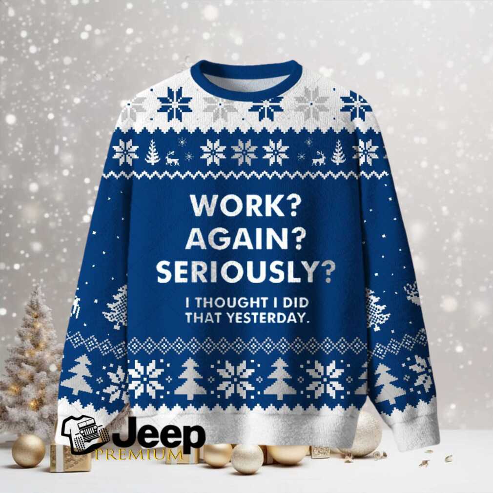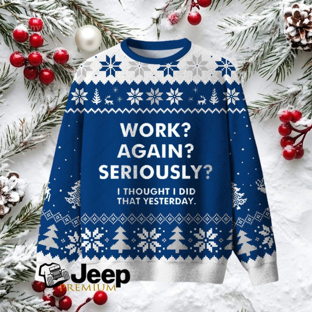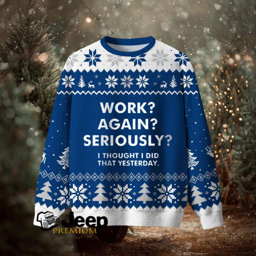 The idea of going back to work after the holidays can be quite dreadful! This “Work Again Seriously” Ugly Christmas sweatshirt is the perfect way to celebrate and show people how much you don’t want to work again. It’s an ideal gift for that family member that hates his job.