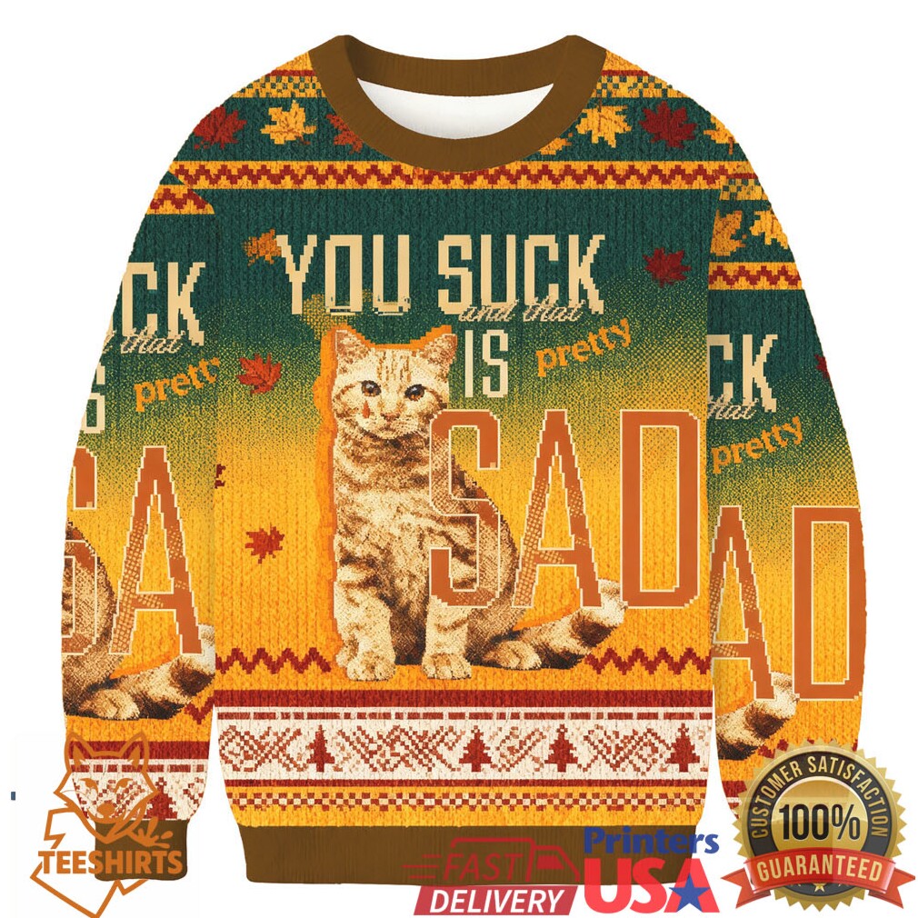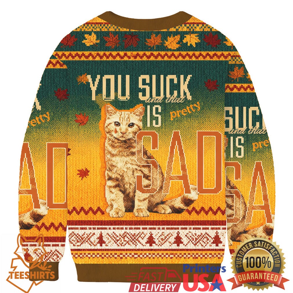 What Makes This You Suck And That Is Pretty Sad Cat Christmas Ugly Sweatshirt Epic
