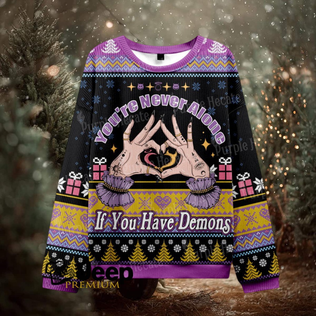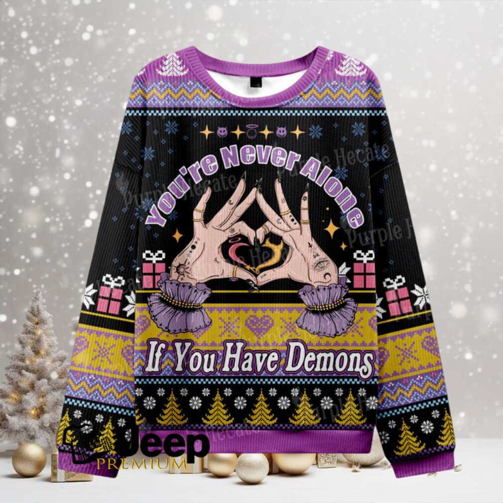 What Makes This You’re Never Alone If You Have Demons Ugly Christmas Sweatshirt Epic