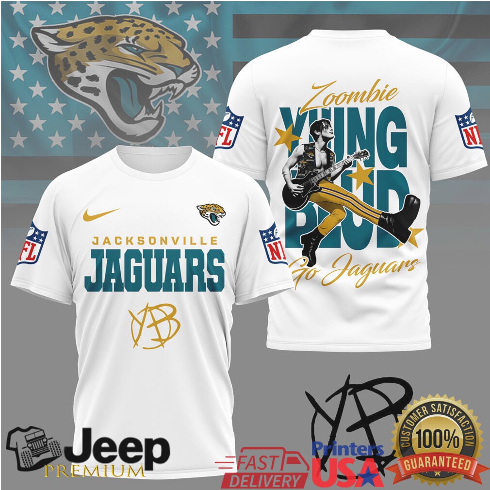 (Yungblud x Jacksonville Jaguars Zoombie Yung Bud NFL Shirt)That unfortunate fact is that, because the Chinese New Year jumps around year to year, it’s always hard to predict which products will be hit hard in a Yungblud x Jacksonville Jaguars Zoombie Yung Bud NFL Shirt or to predict how badly your business will be affected. You may barely notice the effects some years, while get hit hard the very next year. So be certain to sock away a Chinese New Year preparation fund throughout the year so that you’ll have some reserves to fall back on should your store be hit harder than expected. This financial pad will help fill in any holes you suffer in your cash flow during the holiday. The last thing you want to have happened is to suffer an inability to cover your expenses due to low sales volumes.